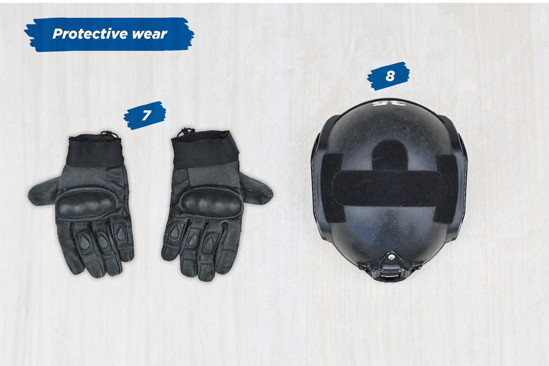 头盔保护操作员的头部免受撞击以及子弹和弹片等高速弹丸的伤害。操作员可以通过扭转头盔后面的旋钮来收紧头盔,以获得更舒适的贴合感。
