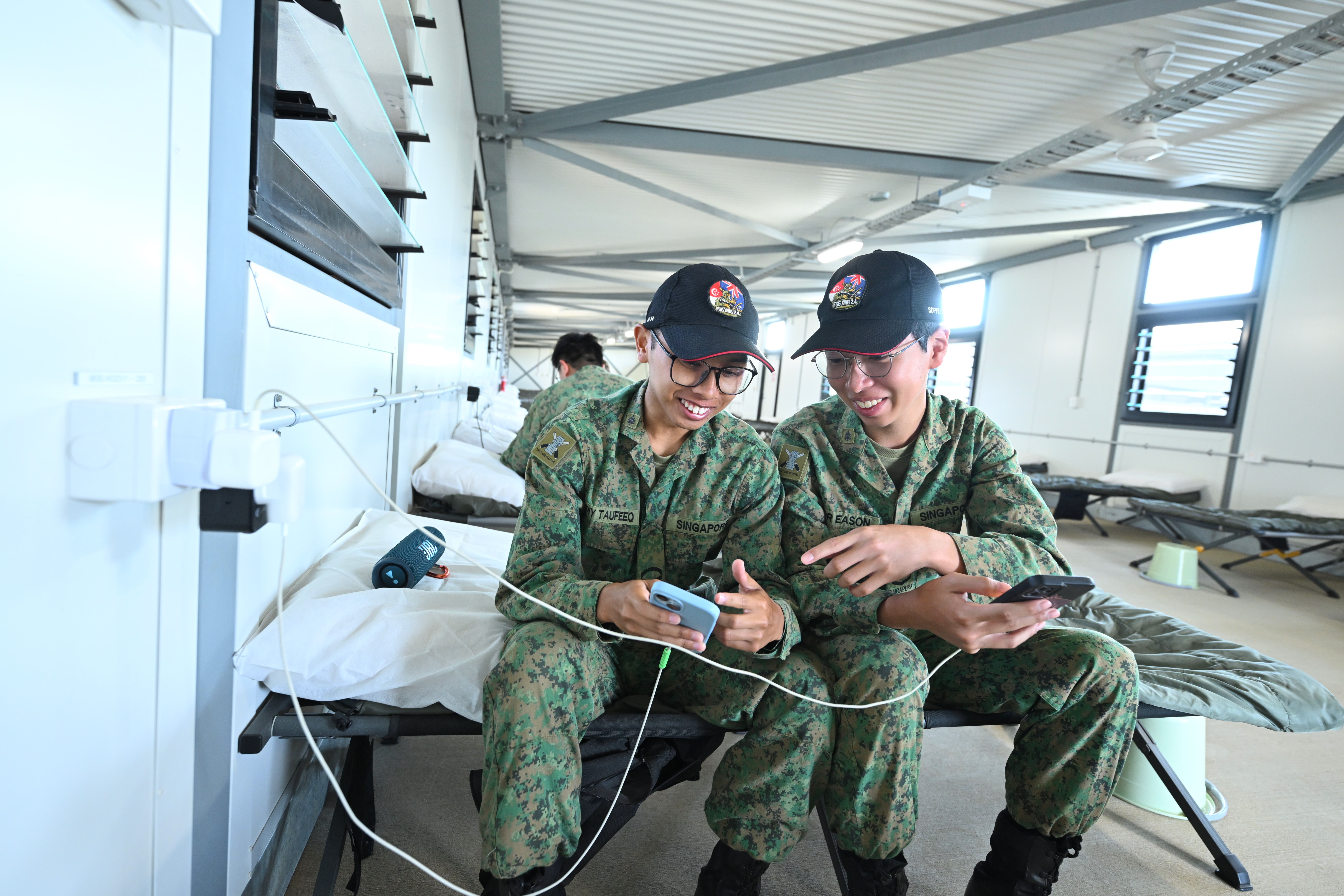 Ketersambungan rangkaian yang dipertingkatkan daripada menara komunikasi terbina menyediakan liputan di seluruh kem – penting untuk tujuan latihan serta untuk tentera menghubungi orang tersayang di Singapura.
