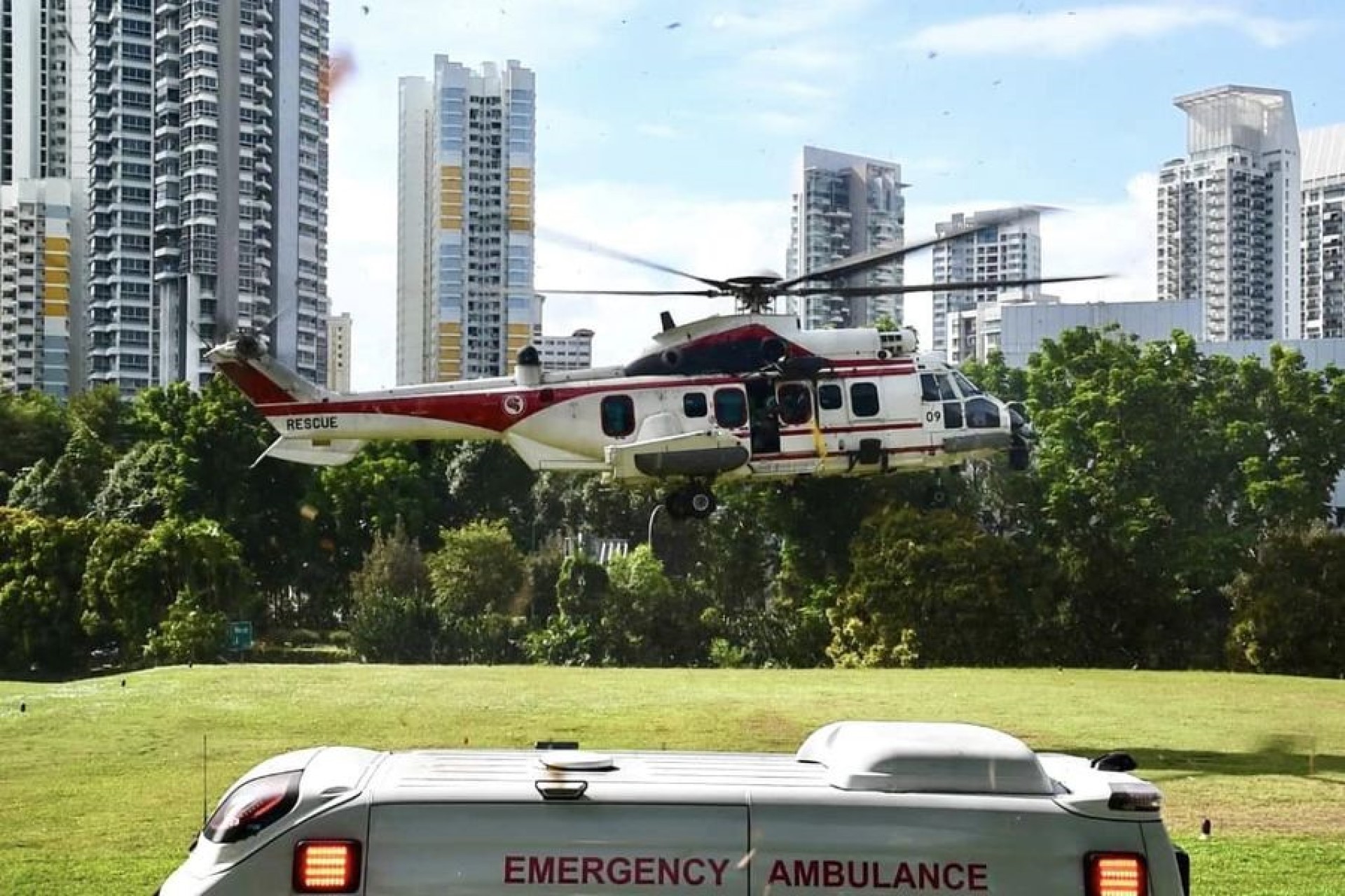 他和医生被放到船上。当患者情况稳定后,Yeo三级上士将她放在担架上,然后用绞车将她吊上直升机。下午4点左右,患者被送达新加坡总医院,病情稳定,意识清醒。