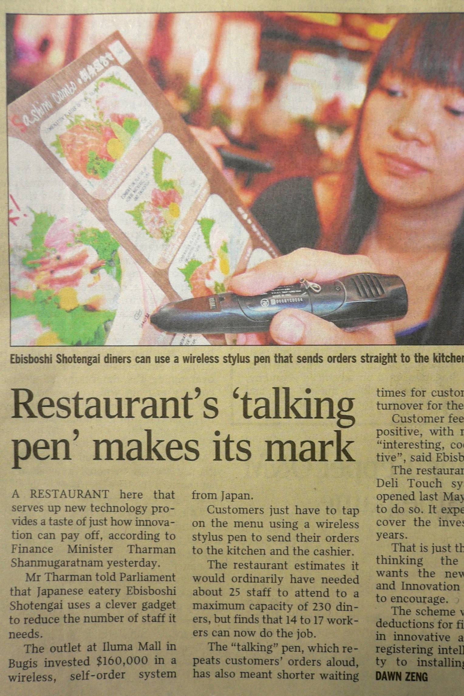 A customer simply had to tap on the food item in the menu with the stylus, and their order would immediately be sent to the kitchen for preparation.