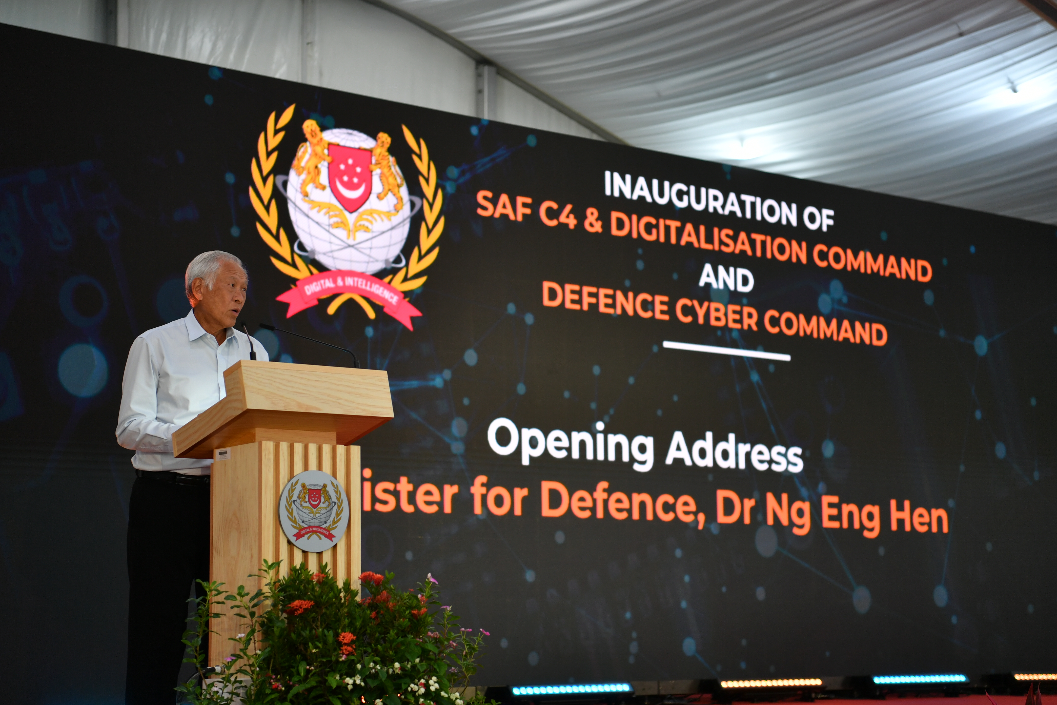 国防部长黄永宏医生于3月18日在山景军营举行的新加坡武装部队指挥、控制、通信、电脑及数码化指挥部(SAFC4DC)和国防网络指挥部(DCCOM)的成立仪式上发表了上述讲话。