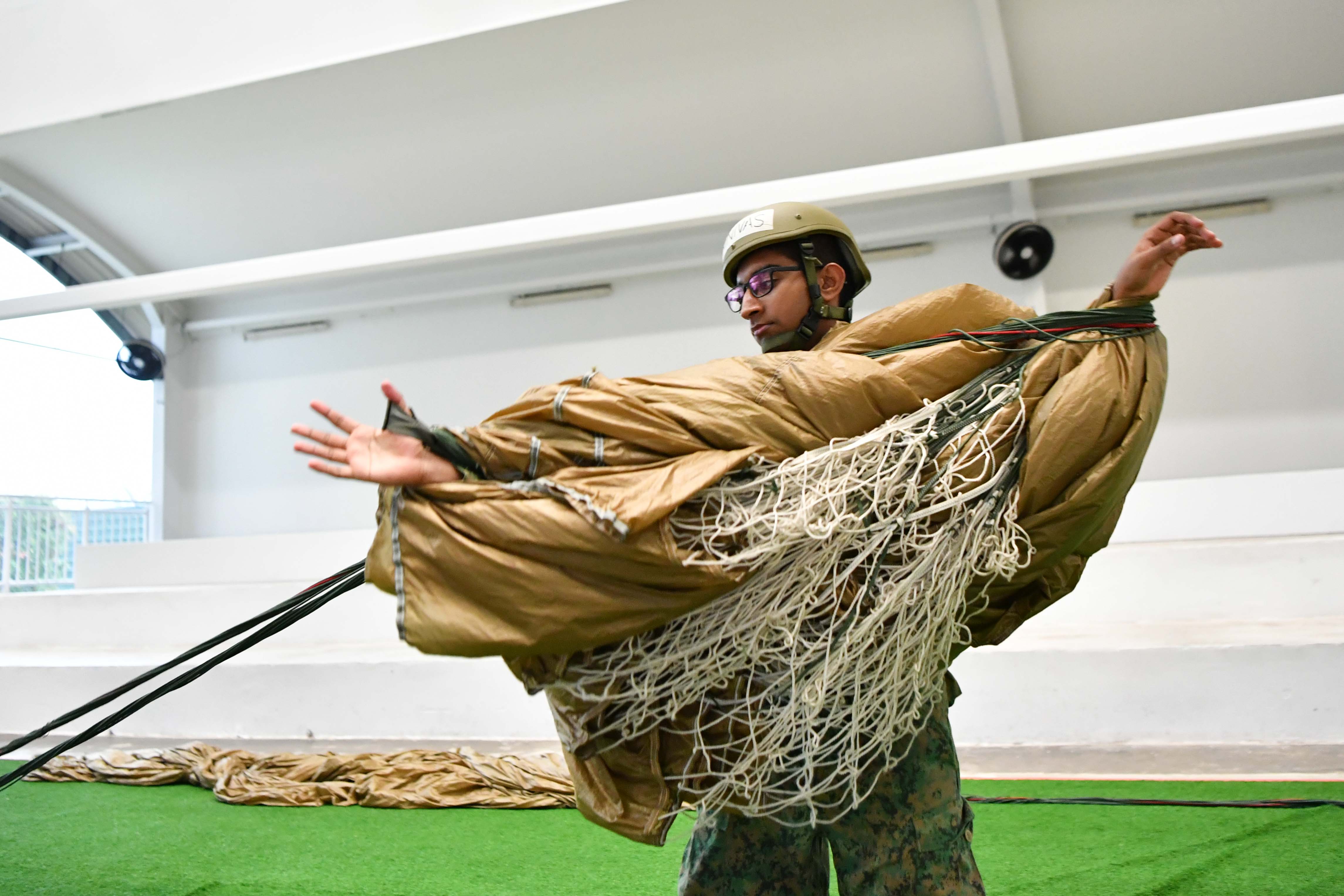 Anggota Perkhidmatan Negara (NSF) Sepenuh Masa berusia 20 tahun itu adalah antara kumpulan terbaru pelatih Komando yang menjalani Kursus Asas Bawaan Udara (BAC) di Kemudahan Latihan Tentera Bawaan Udara (ATF).