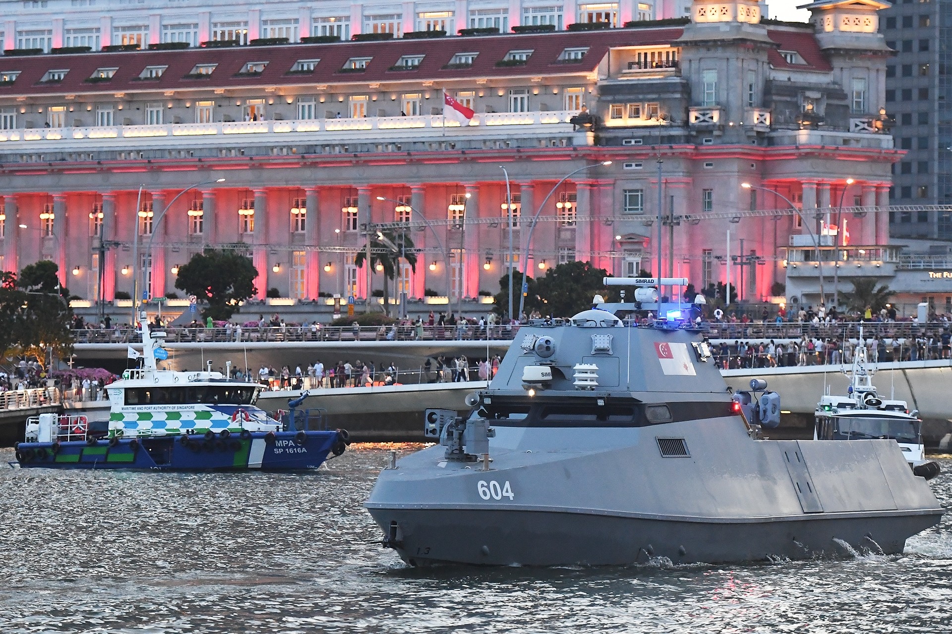 Paparan maritim adalah sebahagian daripada kontinjen kenderaan NDP khas tahun ini, menyertai terbang lalu udara di atas Padang dan pandu lalu di sepanjang St Andrew’s Road.