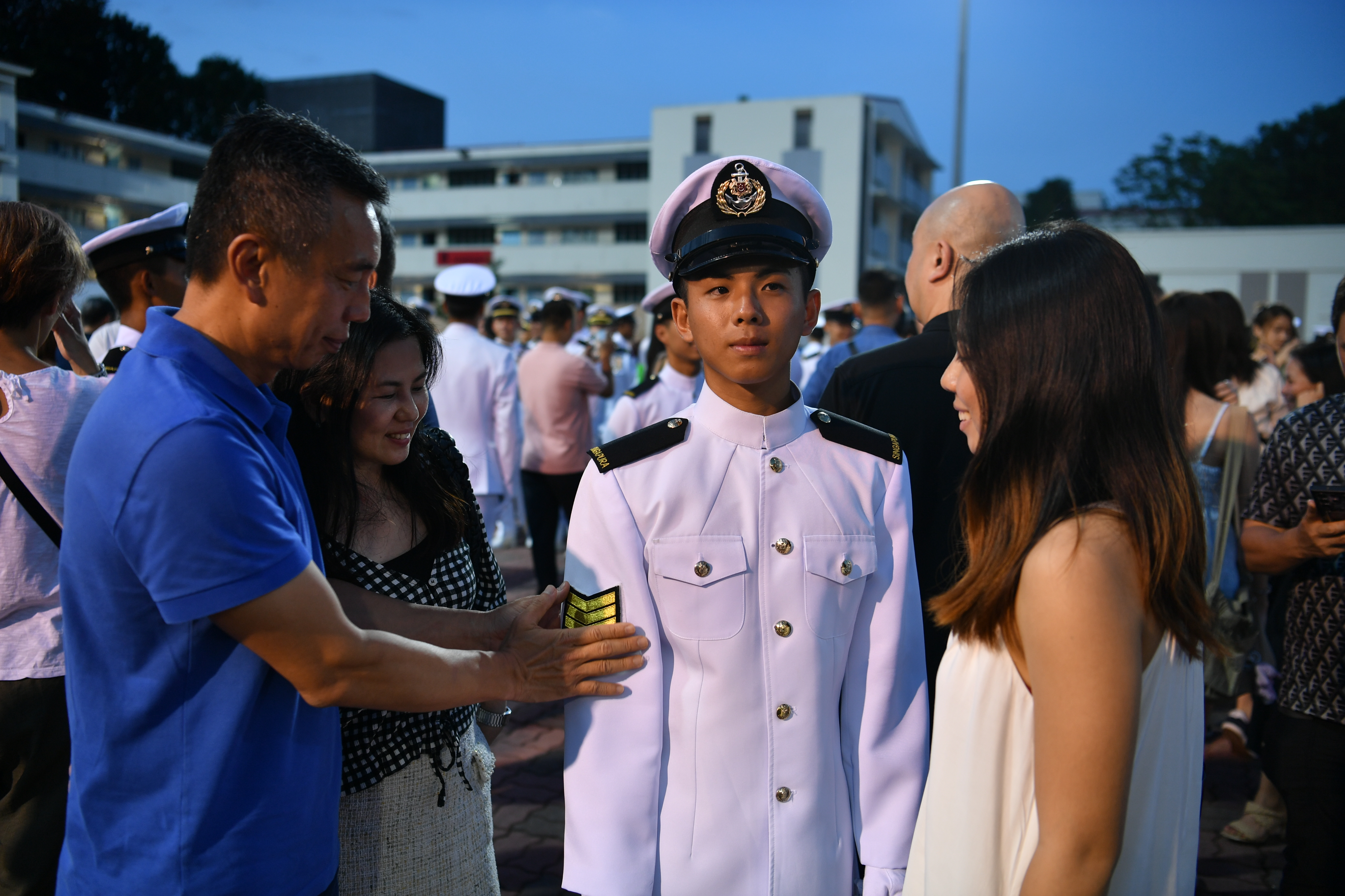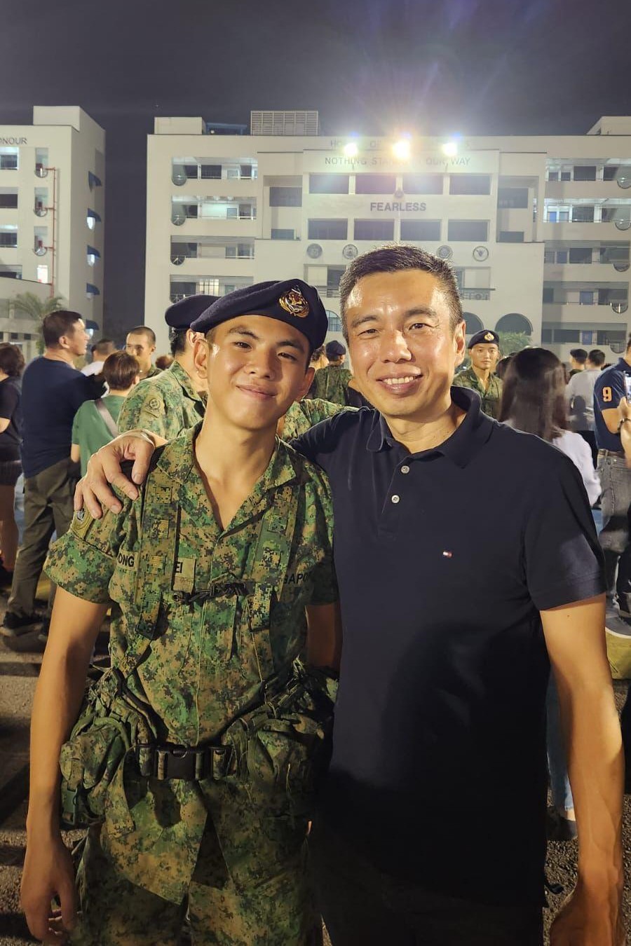 2月20日,在巴西拉峇军营举行的晚间阅兵仪式上,即将从见习专业军士课程毕业的这两人身穿1号军服,身姿矫健且仪表堂堂的并肩站在一起,配合国锋拍摄照片。