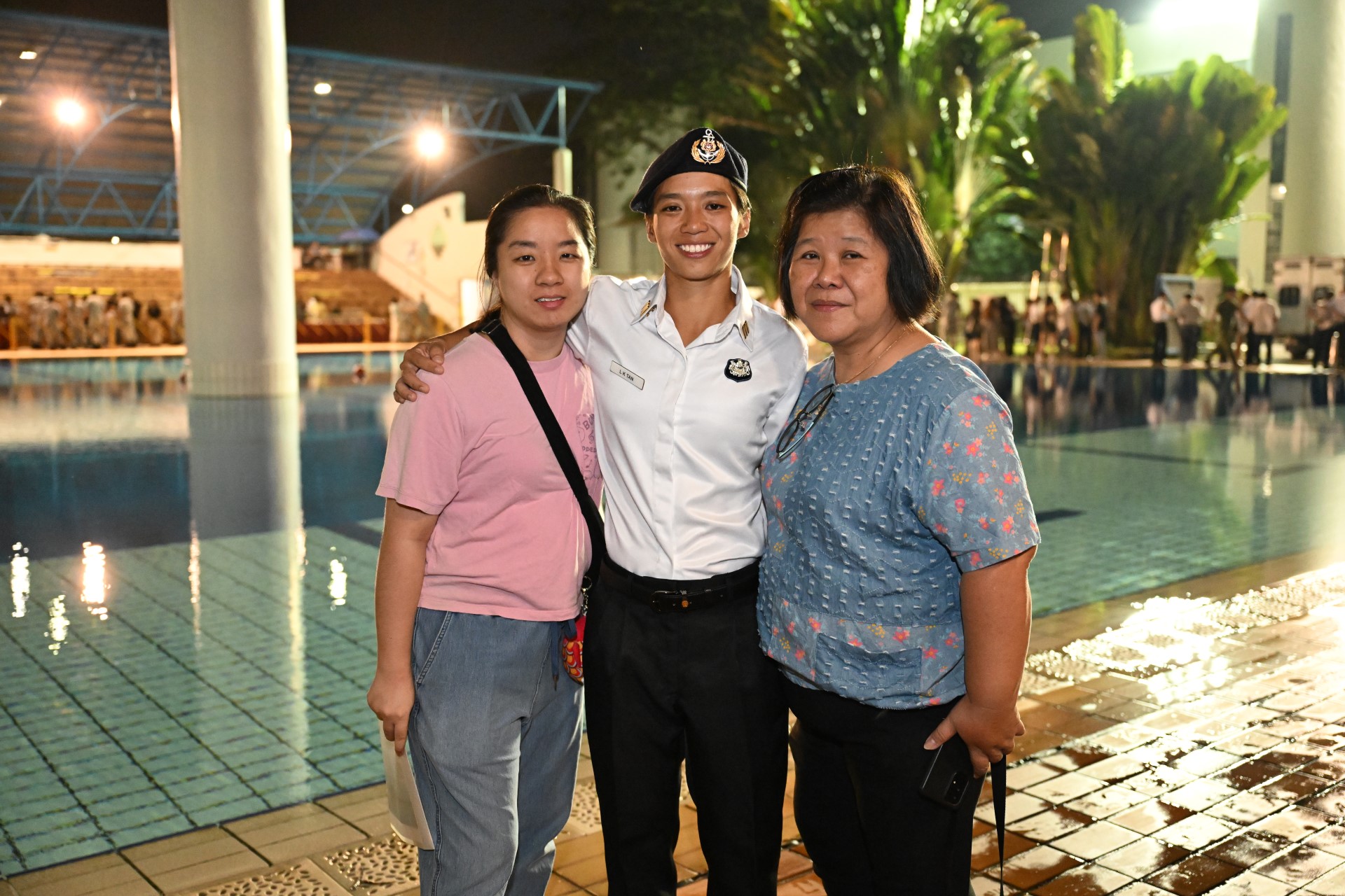 KPT Tan bersama keluarganya selepas mereka menyematkan lencana penyelam tempur untuknya di majlis tersebut di Kem Sembawang.