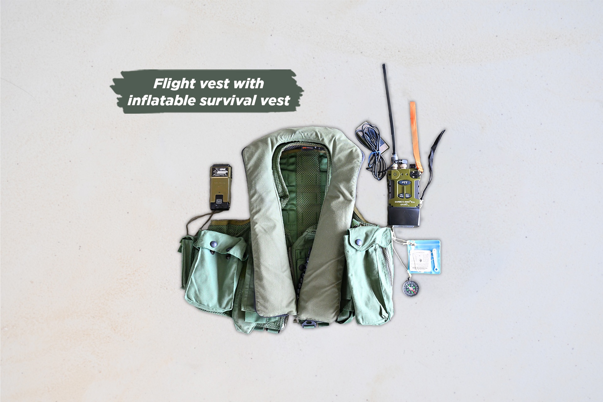Jaket penerbangan mengandungi jaket keselamatan yang boleh dikembangkan secara manual untuk memastikan pemakainya kekal terapung di dalam air. Ia juga mempunyai poket khas yang menyimpan pelbagai alatan dan kelengkapan penting (gambar di bawah) bagi memastikan untuk kelangsungan hidup SENSUP sekiranya terkandas di laut