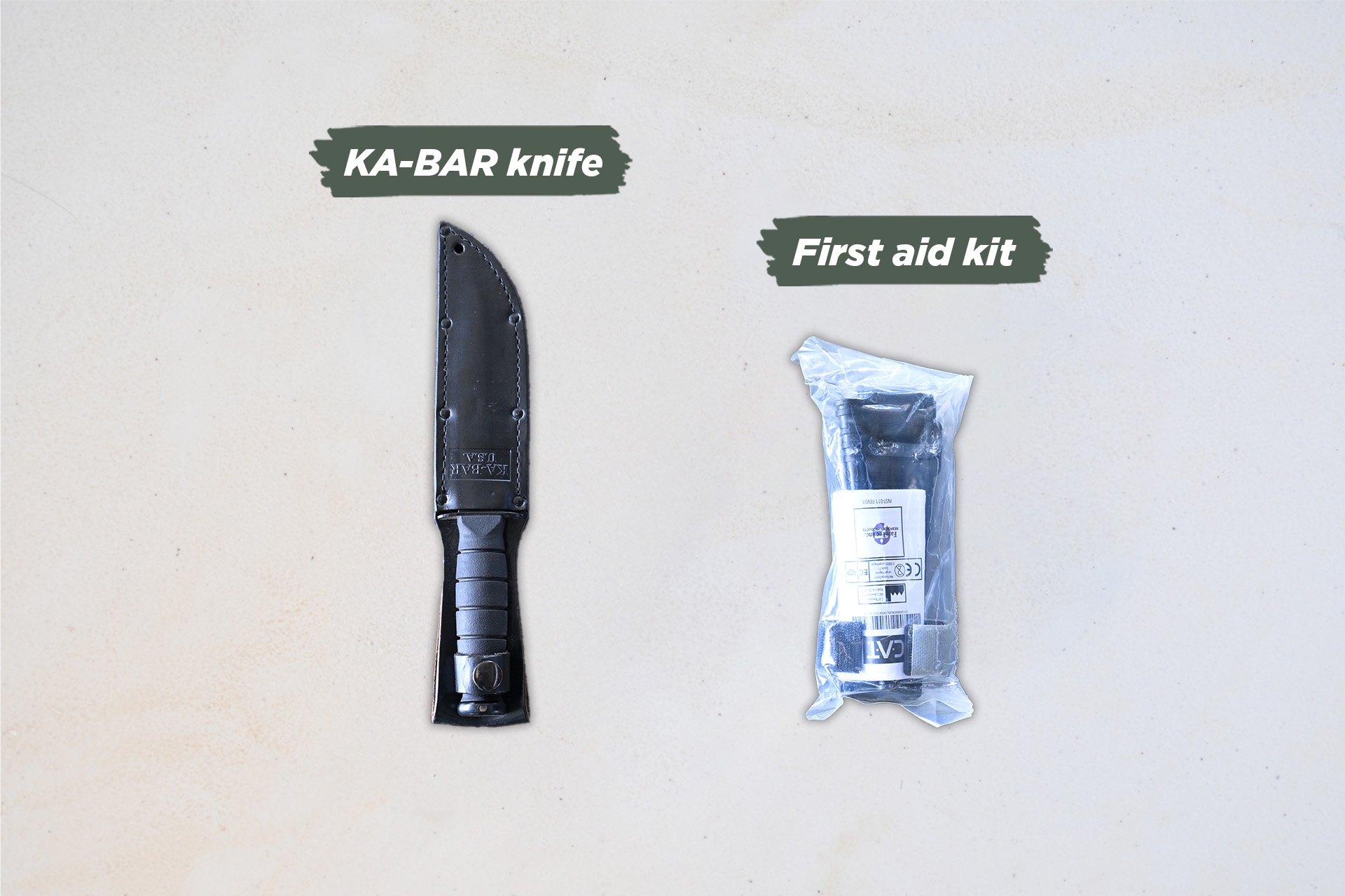 Pisau KA-BAR & kit pertolongan cemas
