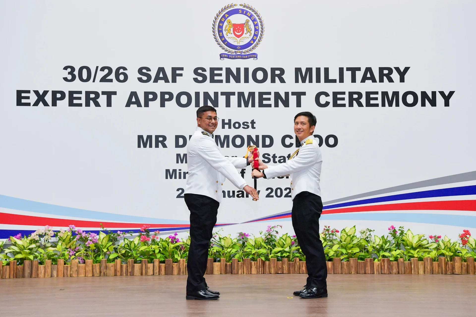 国防部政务部长朱倍庆先生在新加坡武装部队军训学院举行的高级军事专才任命仪式上发表讲话时指出,这是自 2010 年引入军事领域专才计划(Military Domain Experts Scheme,简称MDES)以来人数最多的一次。