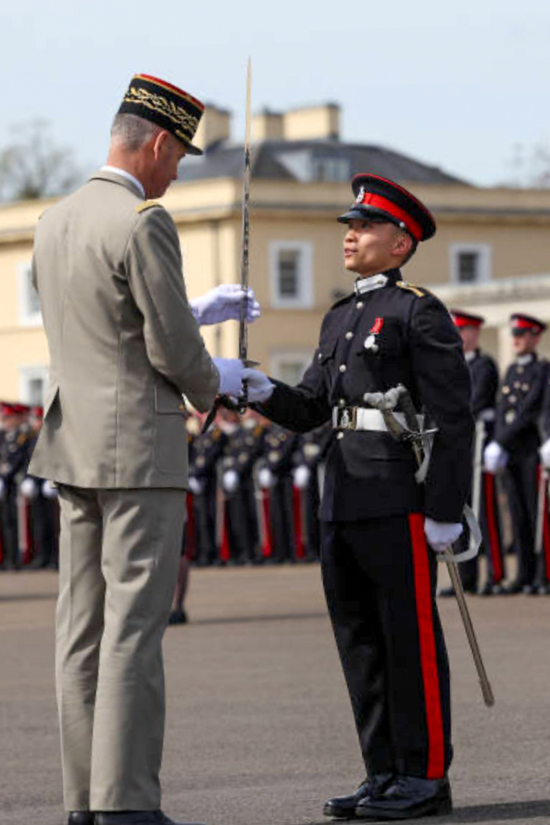Tang中尉,您好!能告诉我您在桑赫斯特皇家军事学院的经历吗?