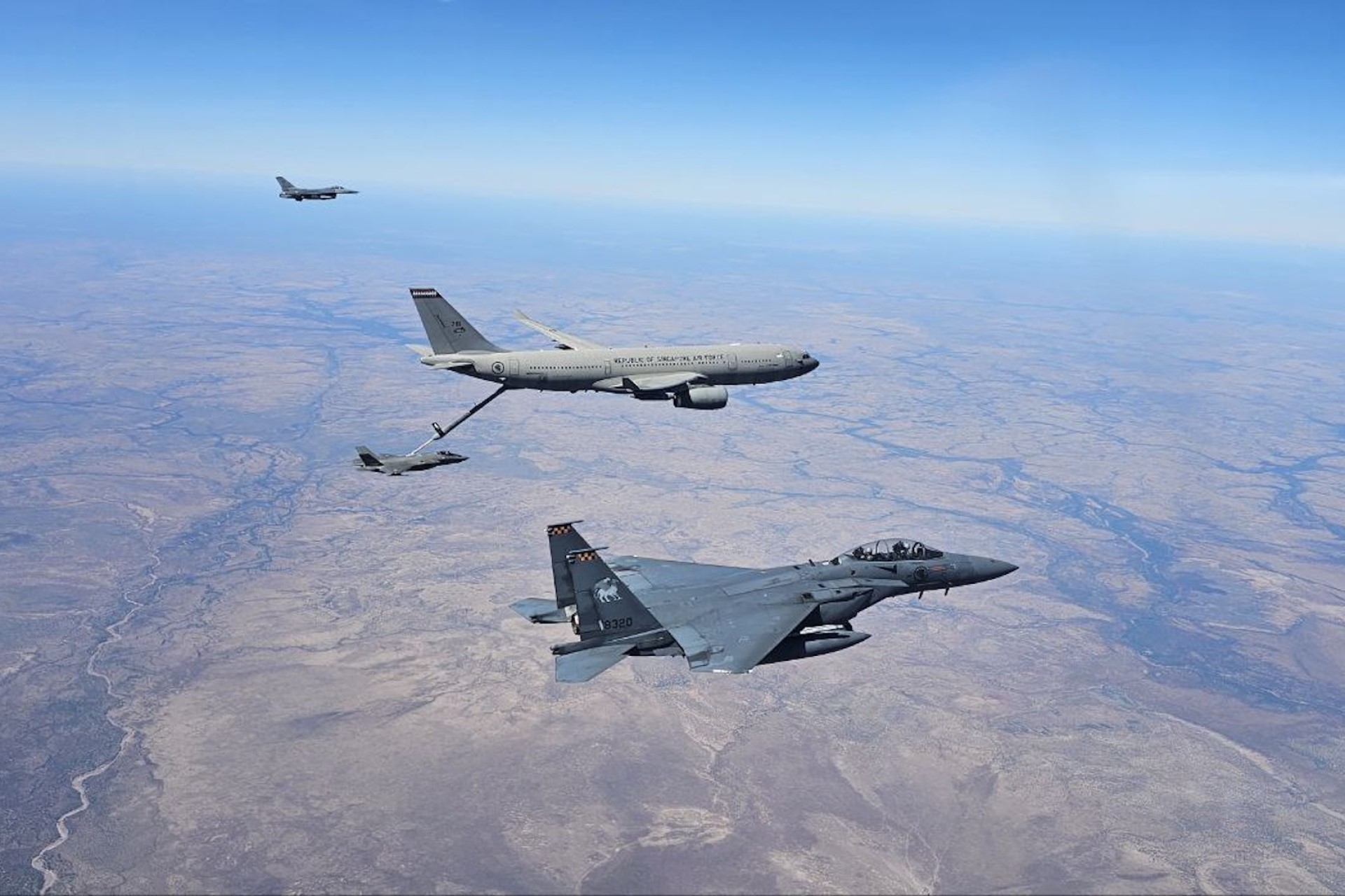 在多国空战演习中,新加坡空军部队与F-35及其他顶级战机并肩作战