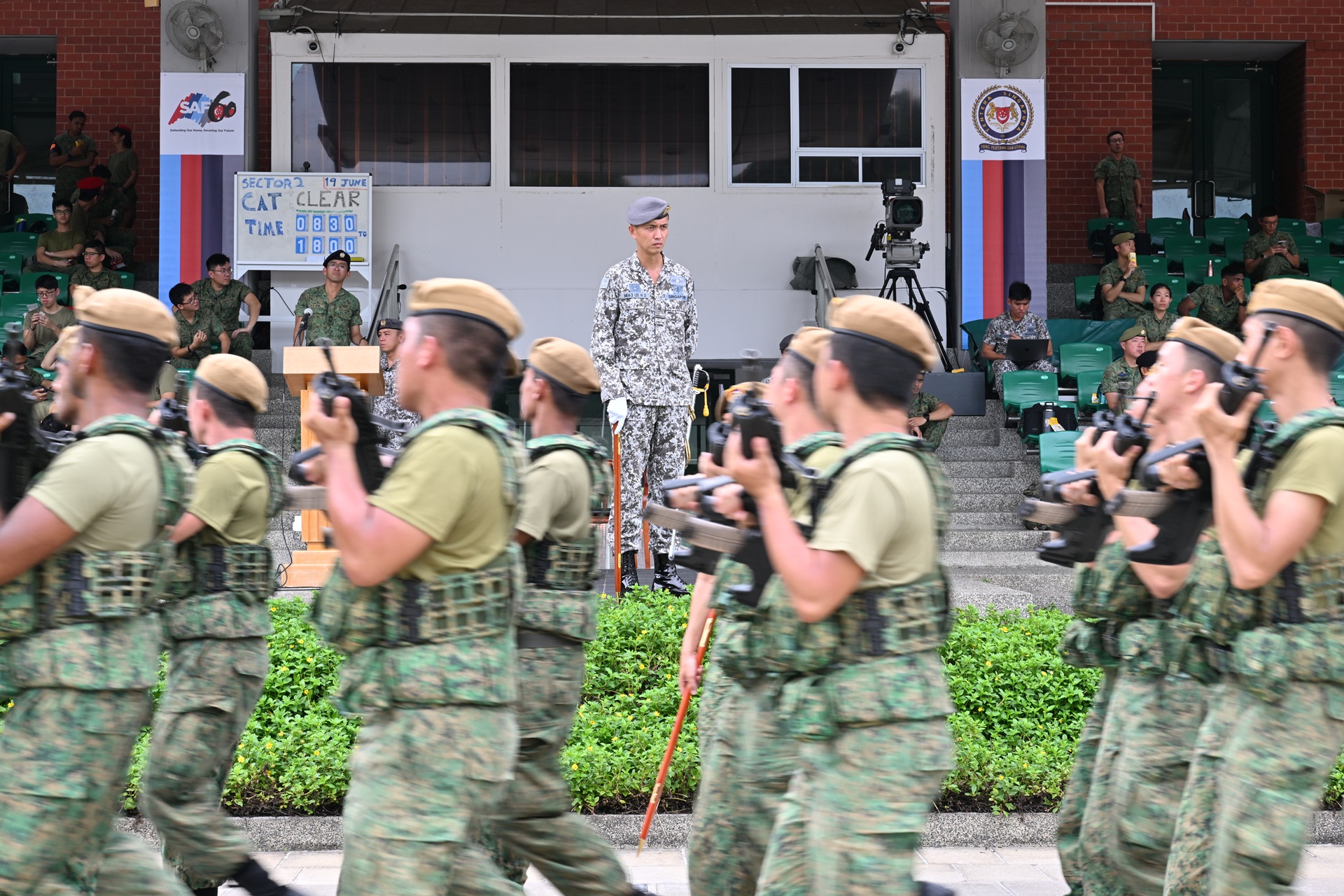 在新加坡武装部队军训学院进行联合训练前约一个月,我与国家军旗队、宪兵仪仗队在莫布雷营地额外安排了 10 次训练。