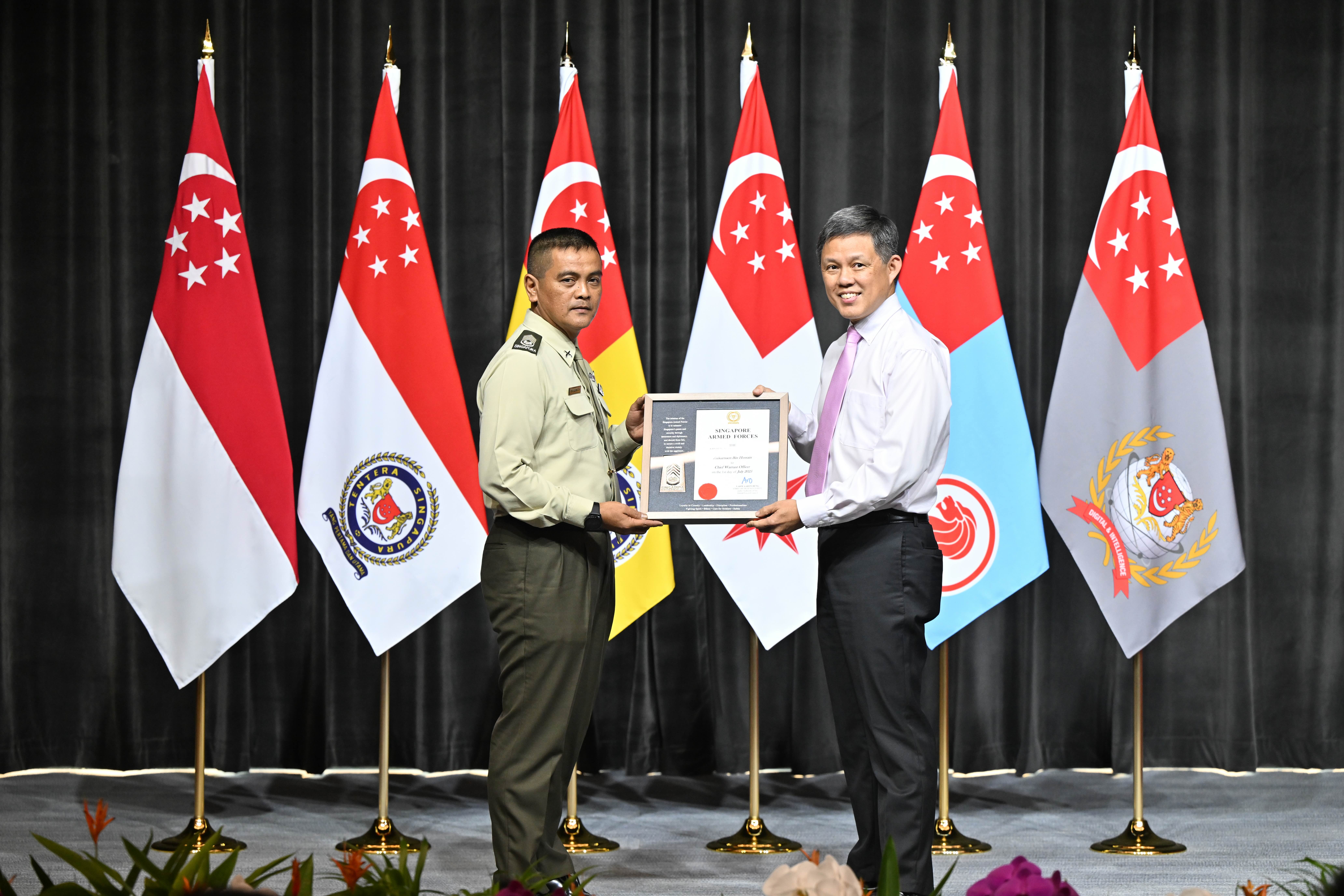 这位第一新加坡卫兵营第 20 批单一入伍迫击炮排中士说:“说实话,我简直不敢相信!但我很感激,因为部队已经认可了我的努力。”