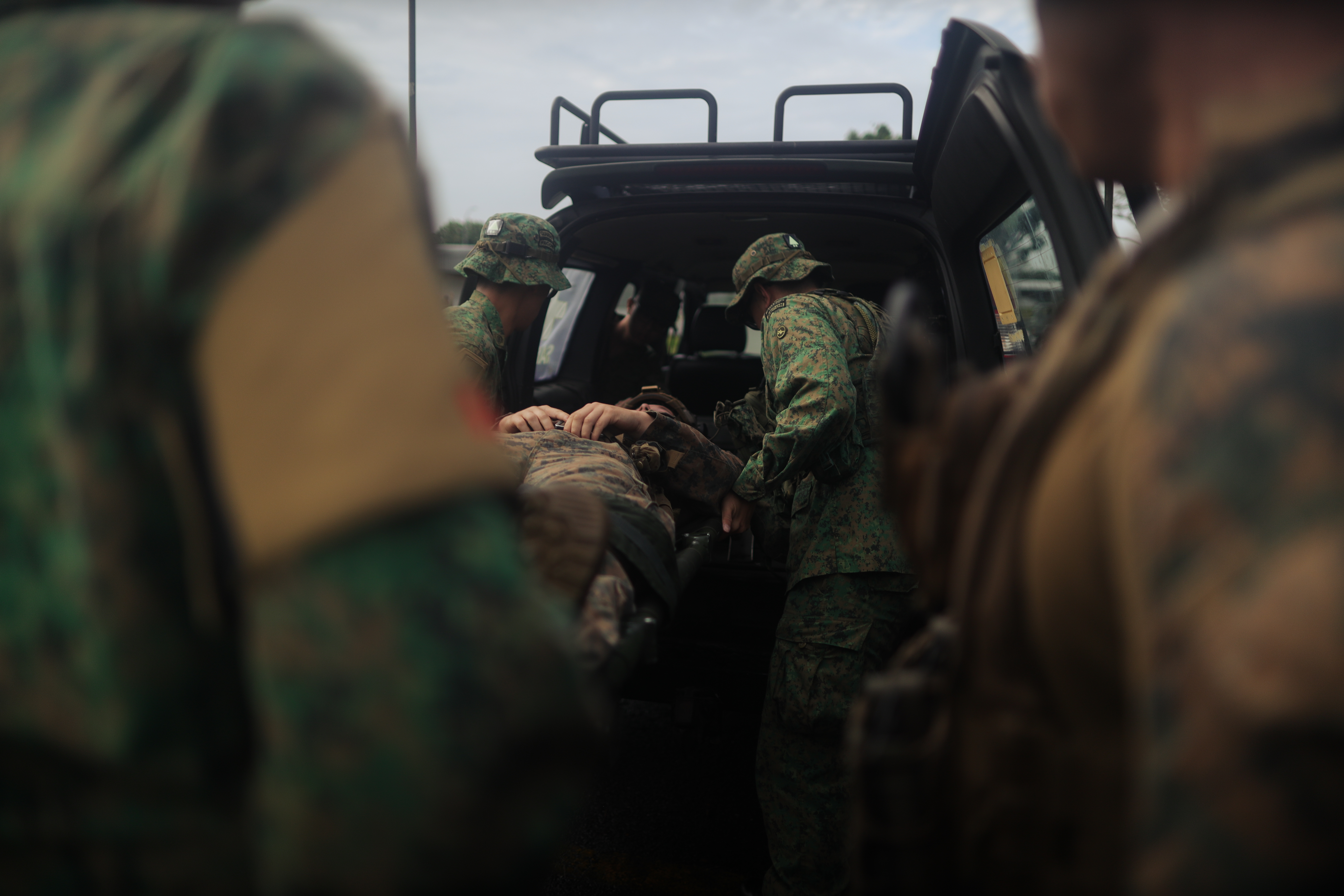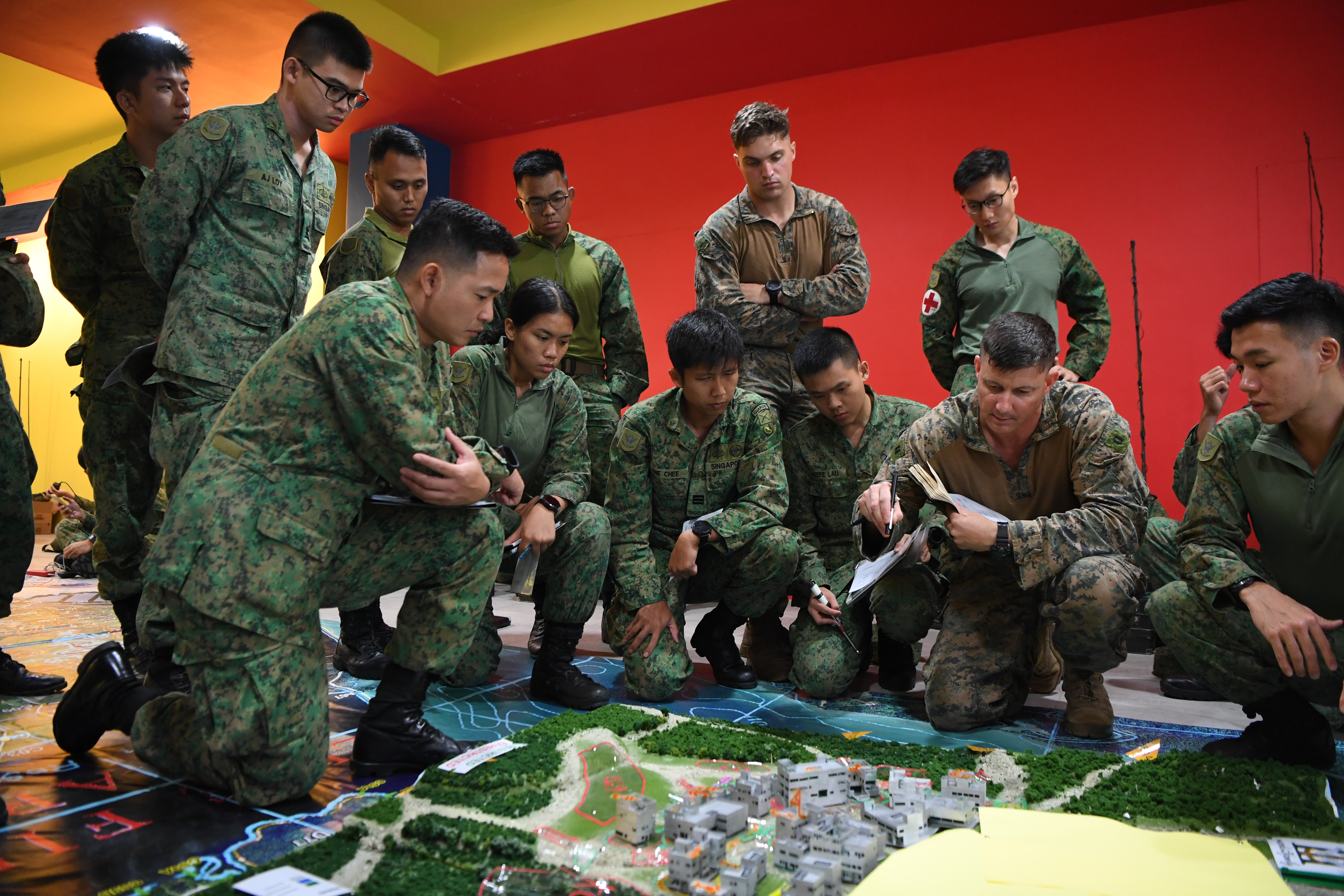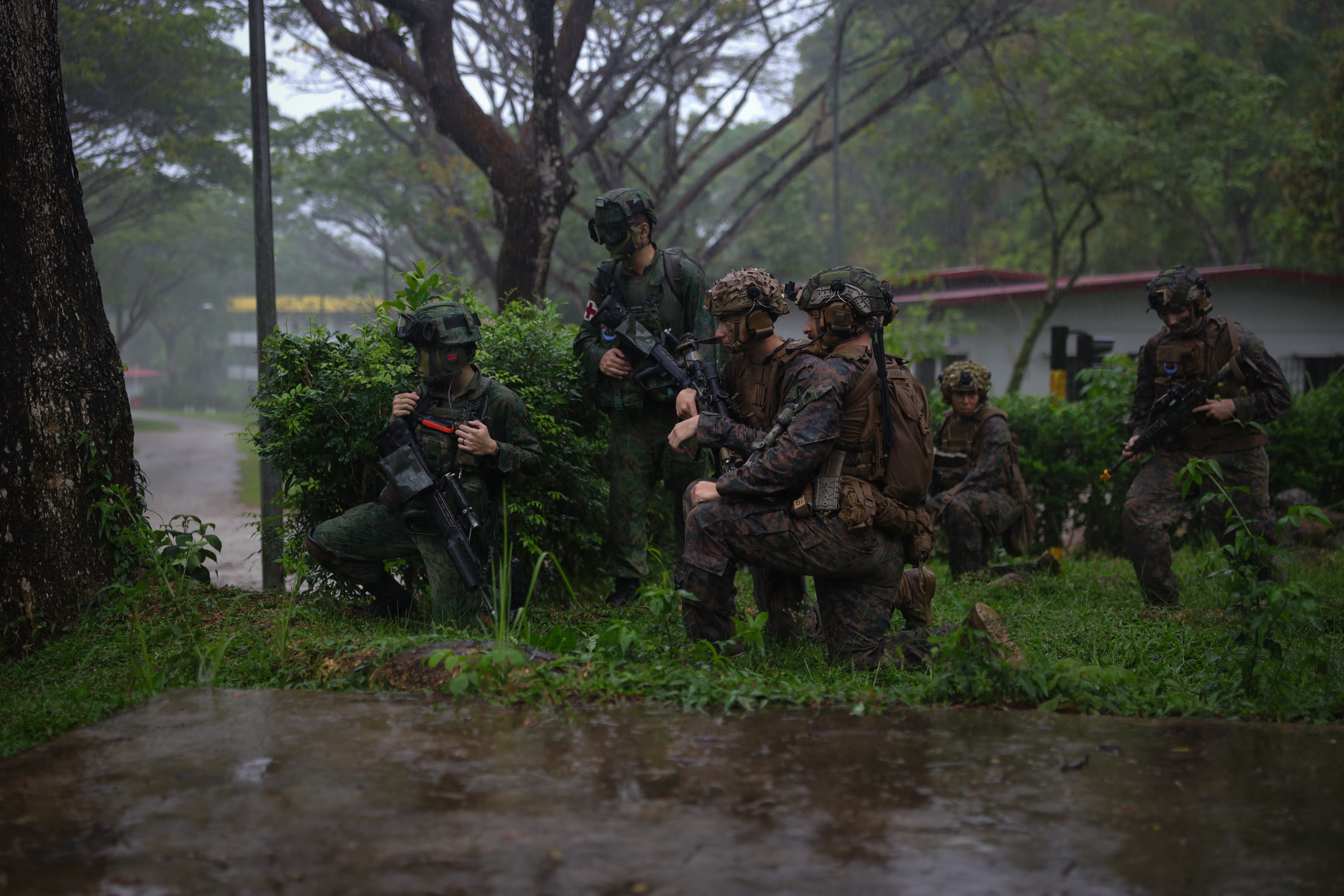From 17 to 26 Mar, more than 600 soldiers from 3rd Battalion, Singapore Guards (3 Gds) and 7th Singapore Infantry Brigade trained and fought in a series of missions with about 200 troops from the Marine Rotational Force-Southeast Asia (MRF-SEA).