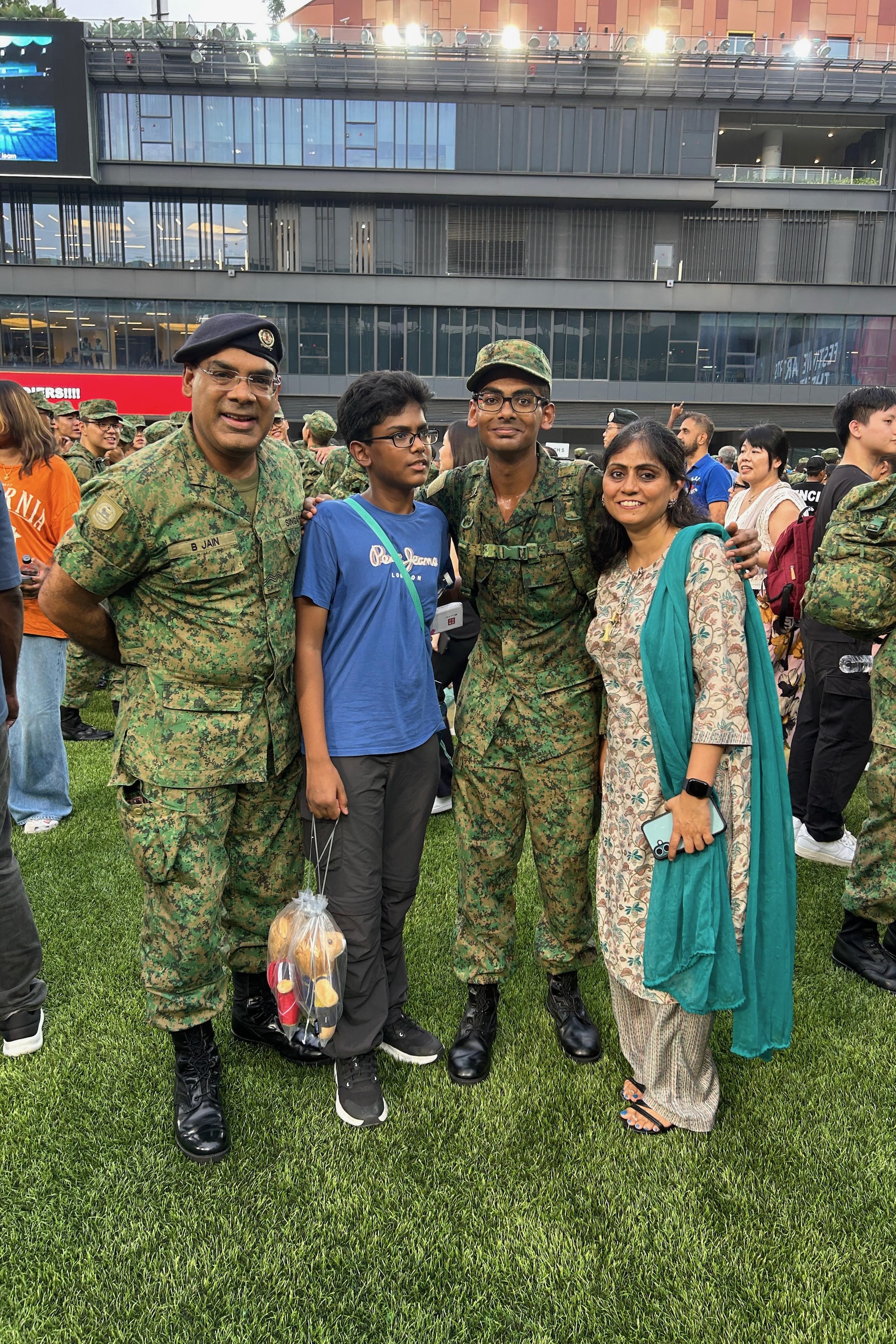 “当我得知此事时,我感到无比自豪,” Jain 三级新加坡武装部队志愿军志愿者说。“看到他追随我的脚步(投身军旅),这种感觉格外特别。这就像我们的共同服役经历完成了一个完整的循环。”