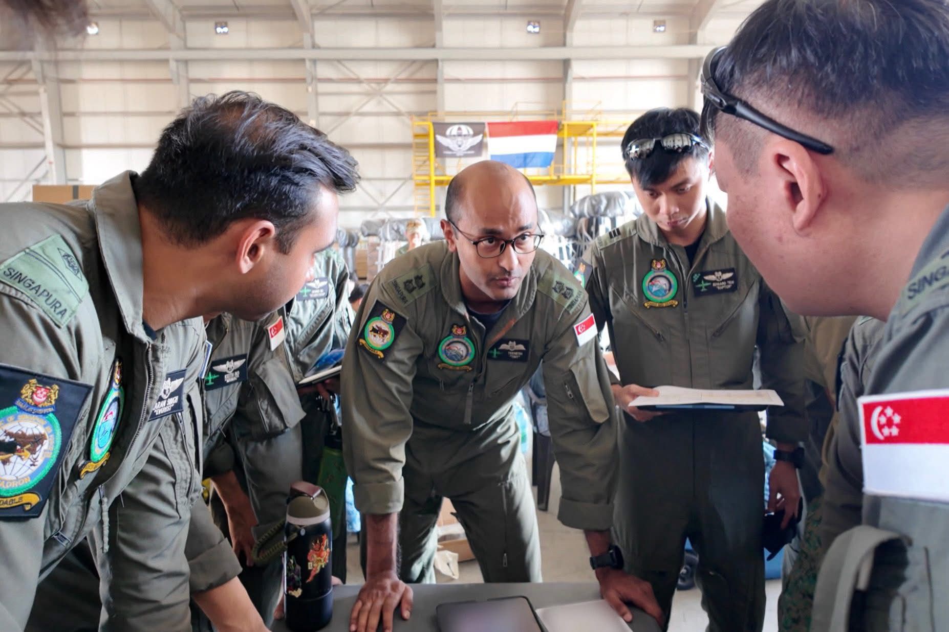 122中队指挥官C Teeneshwaran中校担任空中任务指挥官,负责监督空投任务的规划、协调与执行。