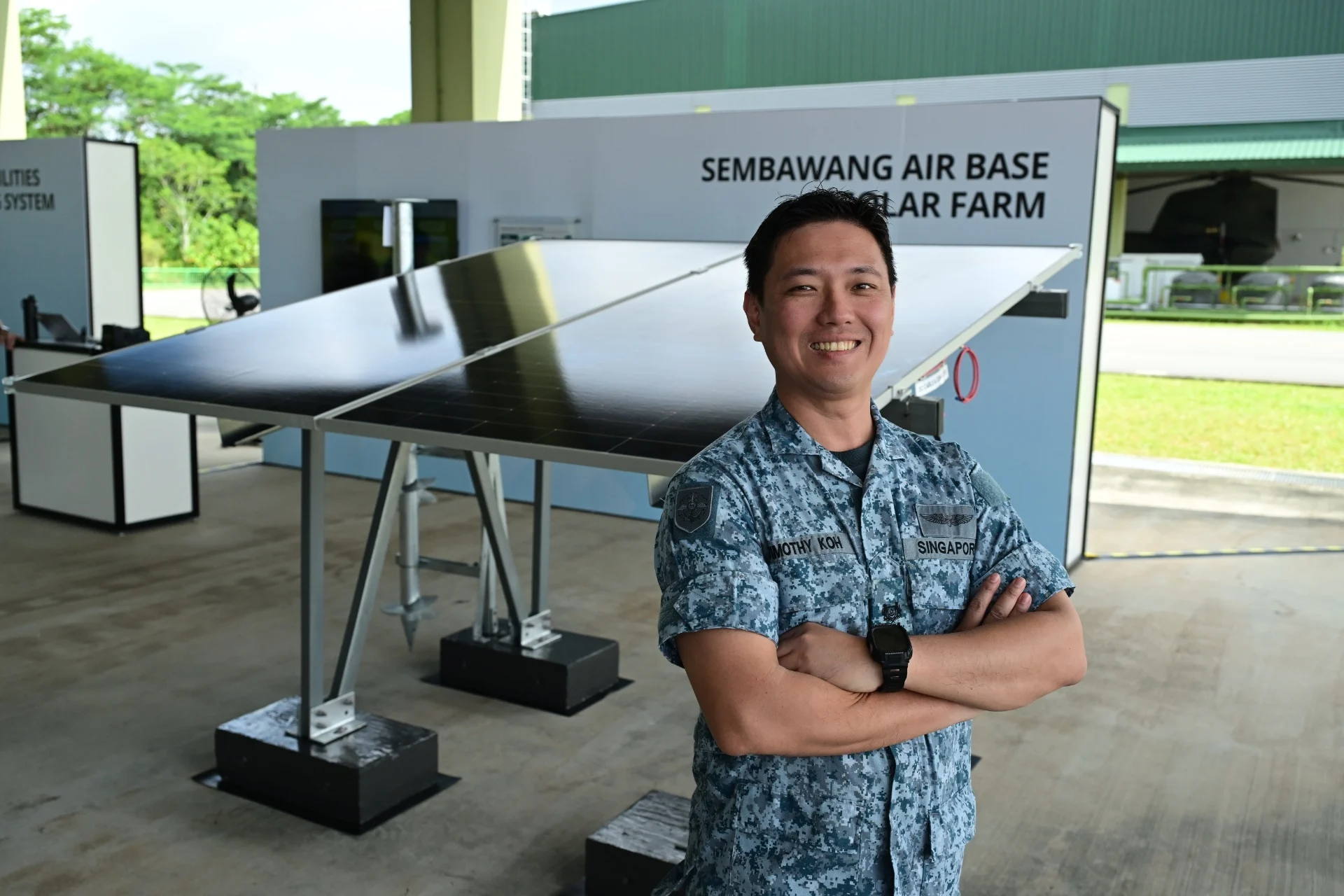 “这其中包括对太阳能电池板的安装高度、朝向和倾角的精准测算。这些电池板还远离作战区域布设,避免产生眩光,且其设计可抵御直升机起降时产生的强风,” 这位现年 42 岁担任新加坡武装部队可持续发展办公室规划与战略主管补充道。