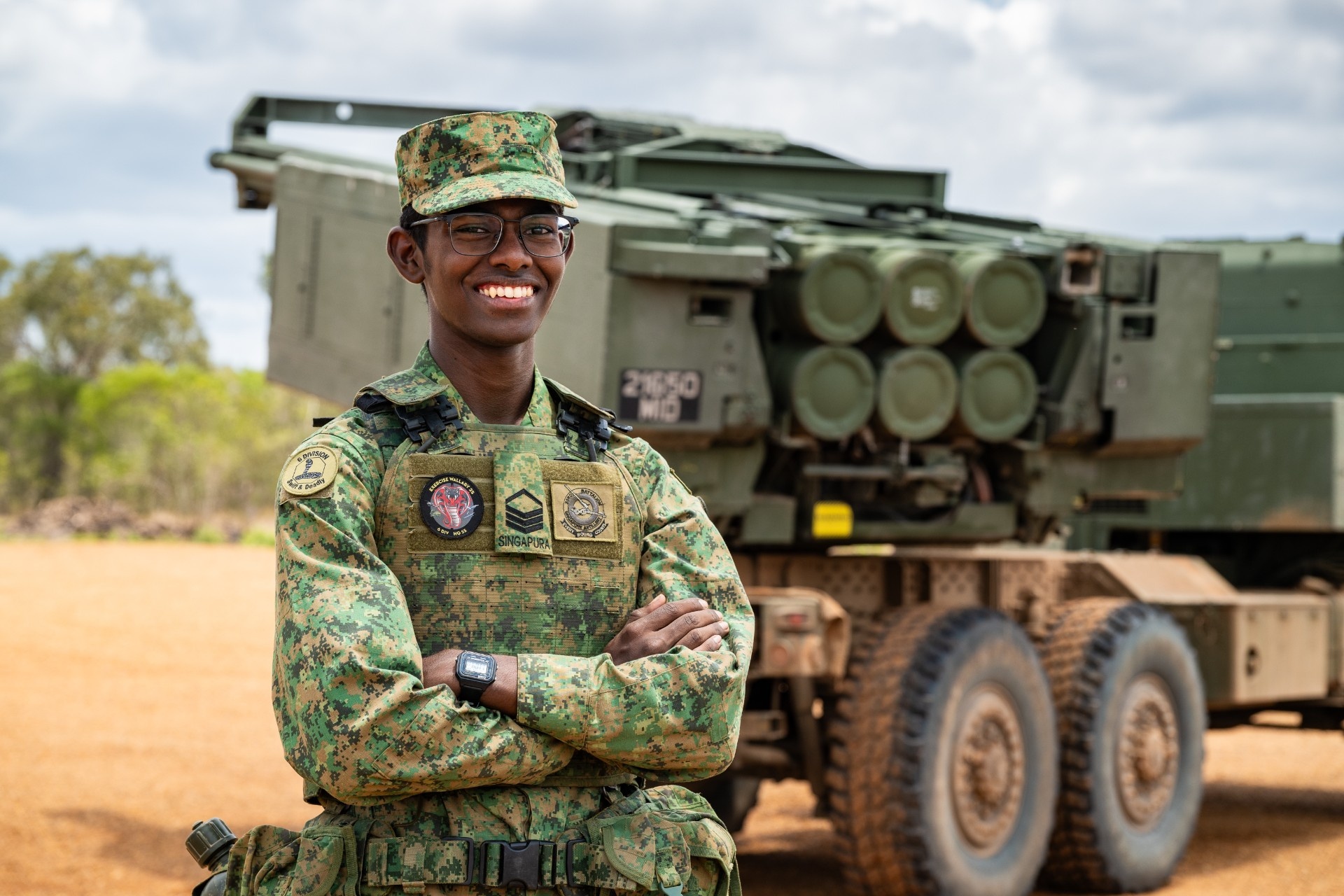 “肩负操作高机动炮兵火箭系统的责任压力很大……但这也是我接手重任、锻炼领导力的宝贵经历,”新加坡炮兵第 23 营 Bravo 炮兵连高机动火箭炮系统炮兵连上士长全职国民服役人员 Surenthiraraj Sailaindraa 二级上士表示。