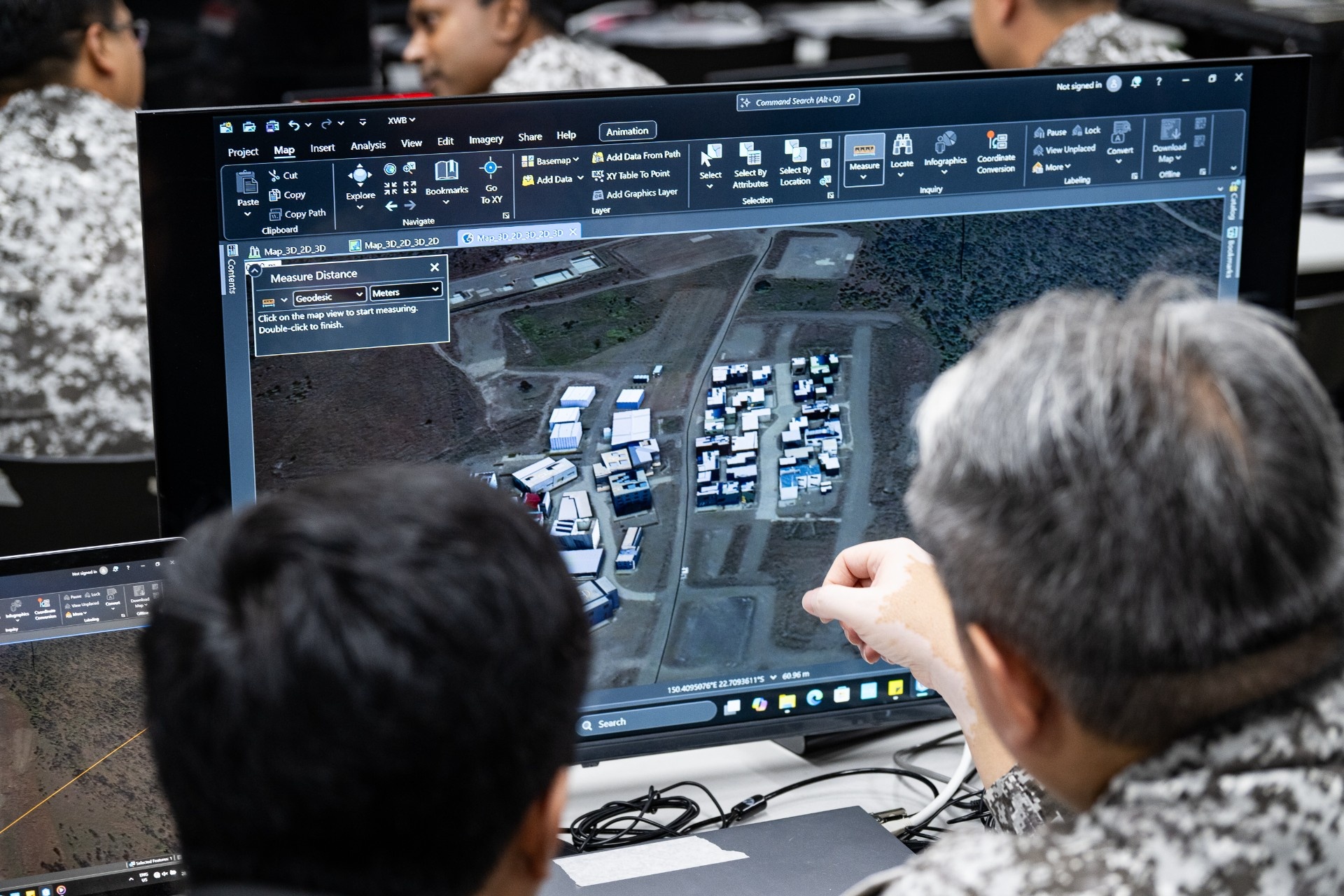 Jurutera DOTC dan penganalisis DIS menguji alat Geospatial 3D (gambar) untuk menyokong perancangan misi Tentera Darat dan RSAF dengan meningkatkan kesedaran situasi medan perang di kawasan bandar yang mereka beroperasi.