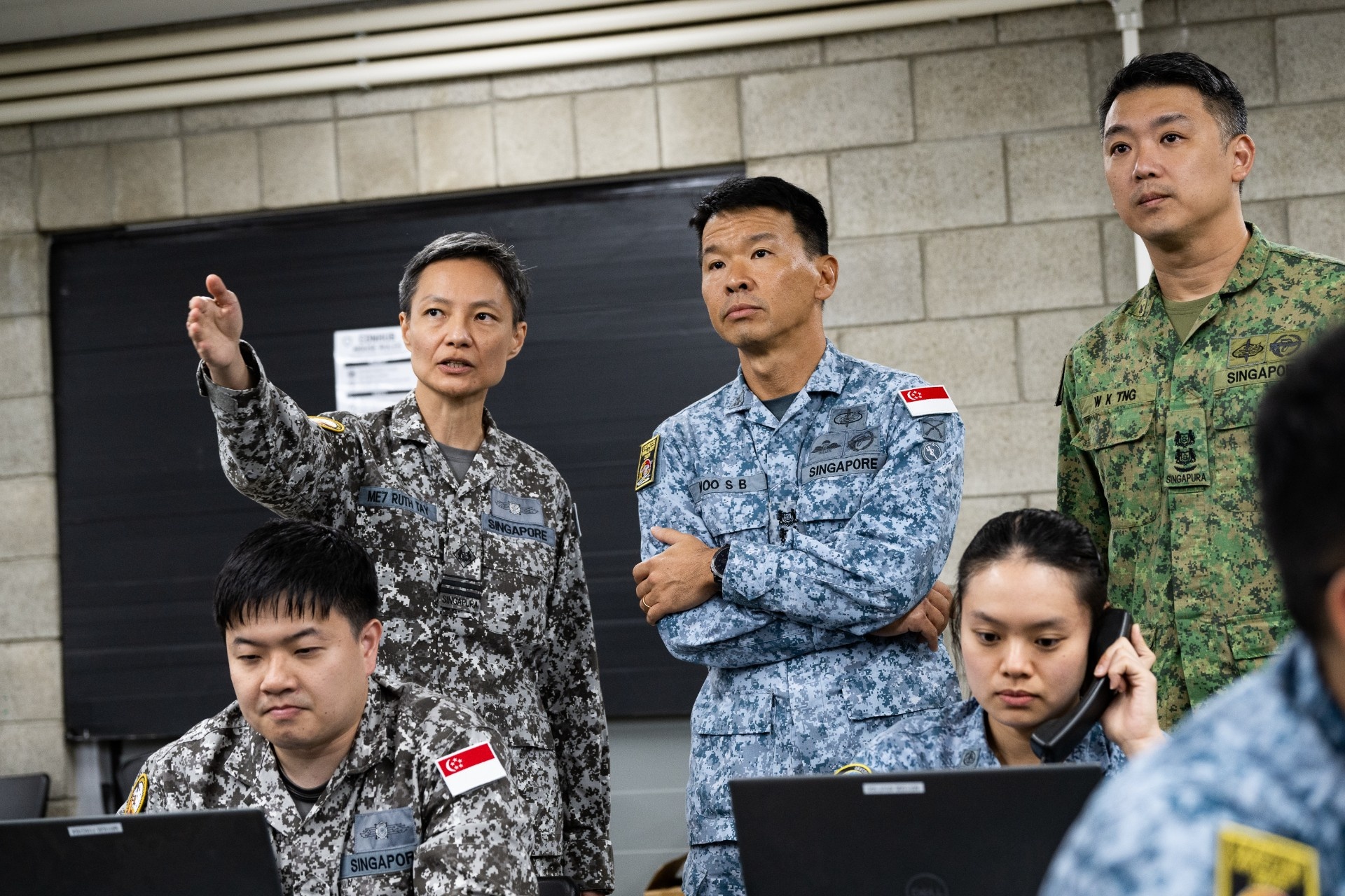 "Latihan ini adalah mengenai manusia, teknologi dan perkongsian. Ia mewakili bagaimana SAF sentiasa berkembang untuk berjuang dengan lebih berkesan," kata Kolonel (COL) Kwek Kian Leong, Panglima Divisyen Ke-6 Singapura (6 Div) / Ibu Pejabat Kesan dan Serang (HQ SS).