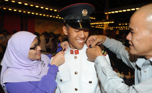 Despite the downcast sky on 15 Jan, the spirits of 447 officer cadets were anything but dampened. Even as the rain began to pour midway through the ceremony, they stood proud in their well pressed white ceremonial uniforms on the parade ground of SAFTI Military Institute.