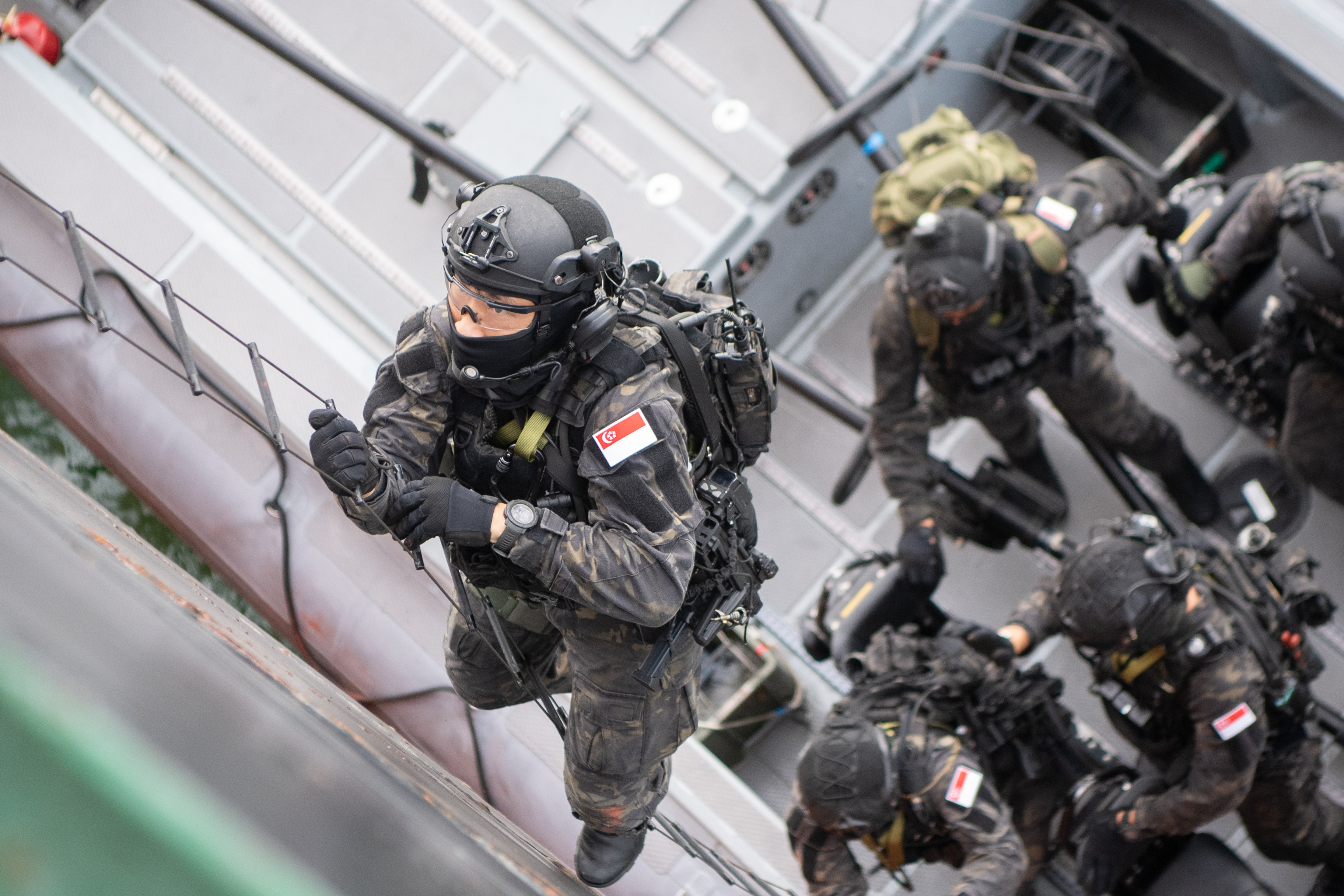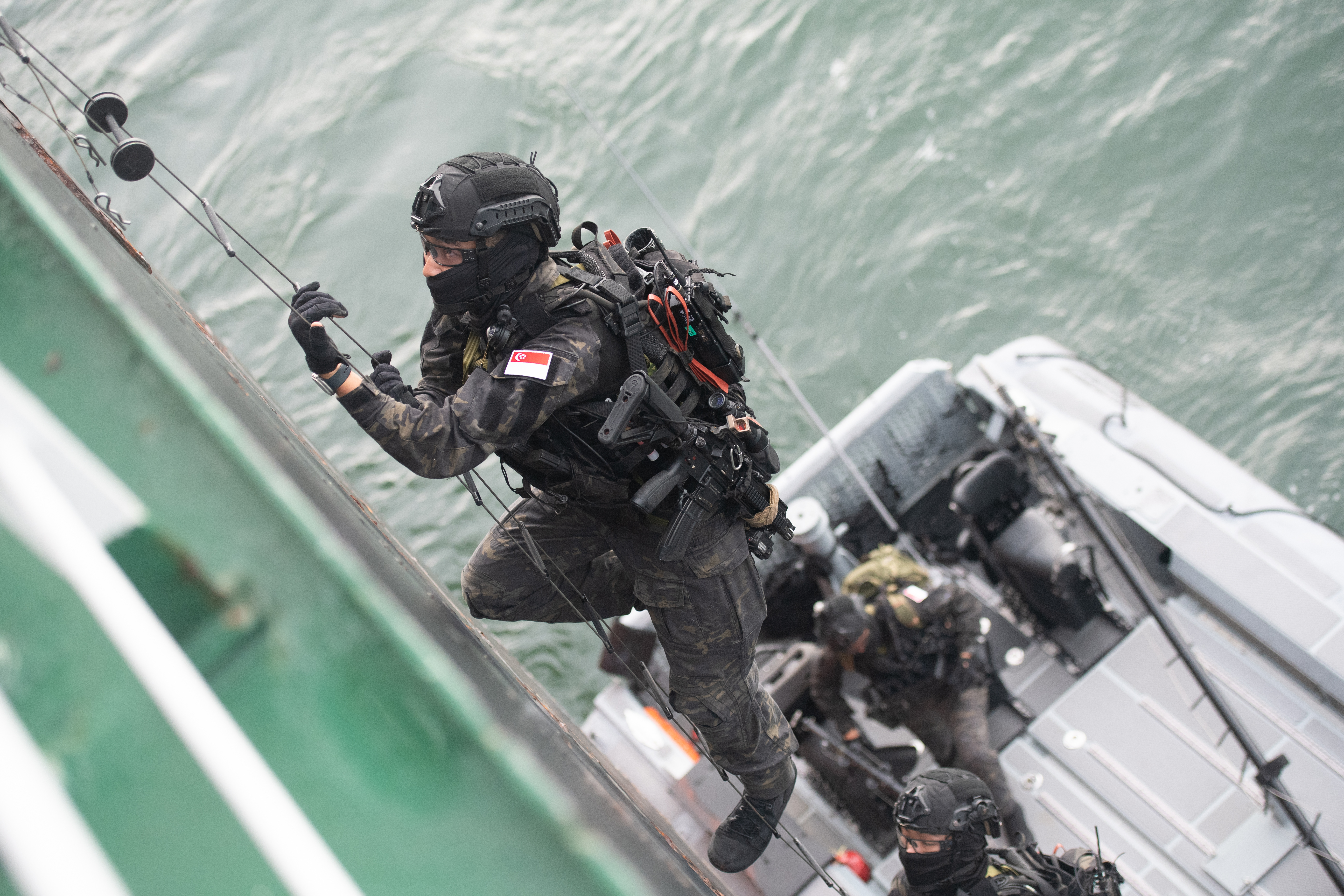 Special operations units from the Singapore Armed Forces (SAF) and Indonesian National Defence Forces (TNI) spring into action – inserting by sea and by air, they storm the vessel of interest (VOI) and work hand-in-hand to neutralise the threat.