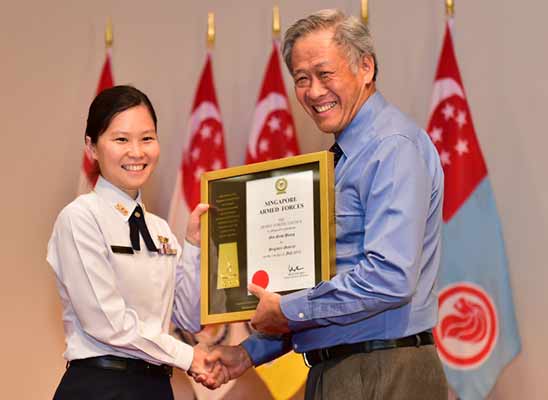 The Air Force officer received her certificate of promotion from Minister for Defence Dr Ng Eng Hen in a ceremony held at the Ministry of Defence on 26 Jun. All promotions will take effect from 1 Jul.
