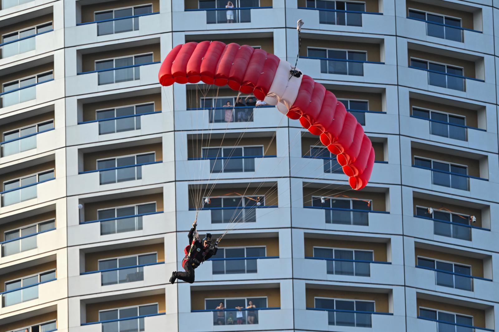 Coordinated jump by Red Lions & Naval Divers at NDP