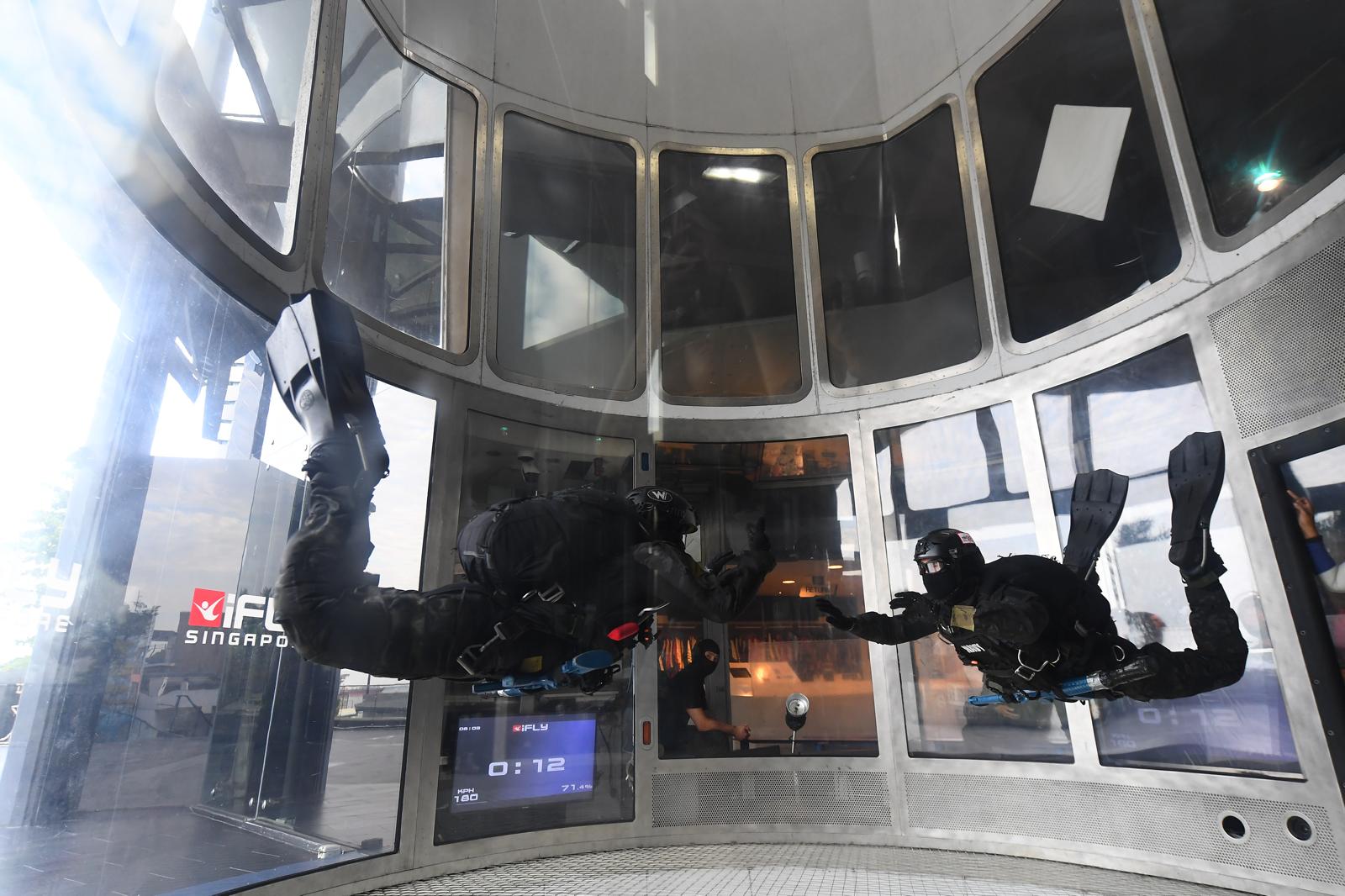 Training at iFly Singapore’s vertical wind tunnel forms part of the Military Freefall Course.