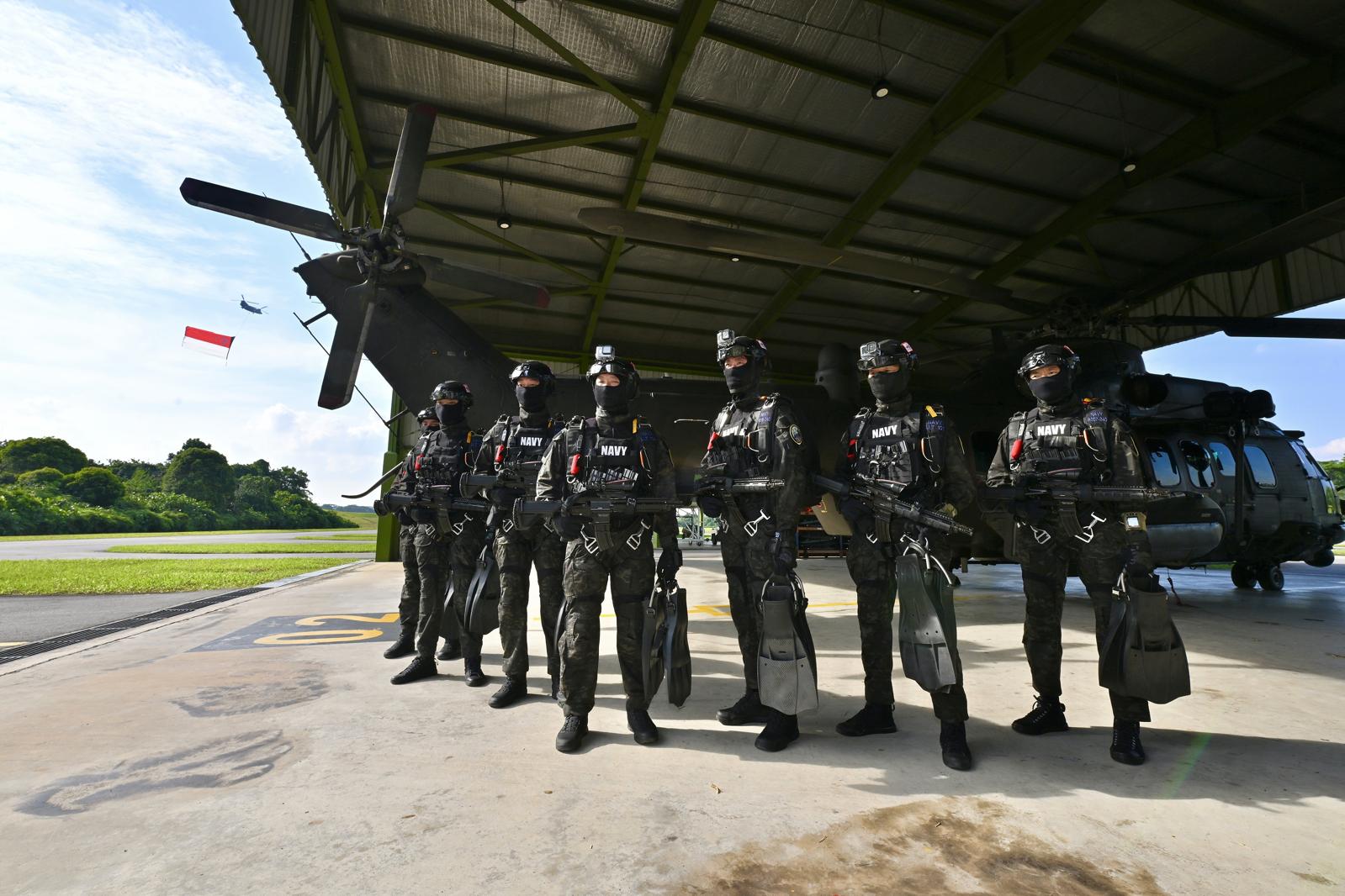 “海军潜水员和红狮跳伞队队员在不同的时间从两个不同的平台上跳下来。要让动作同步,需要极高的精准度,”这位 45 岁的 2025 年国庆庆典海军潜水队领队说。