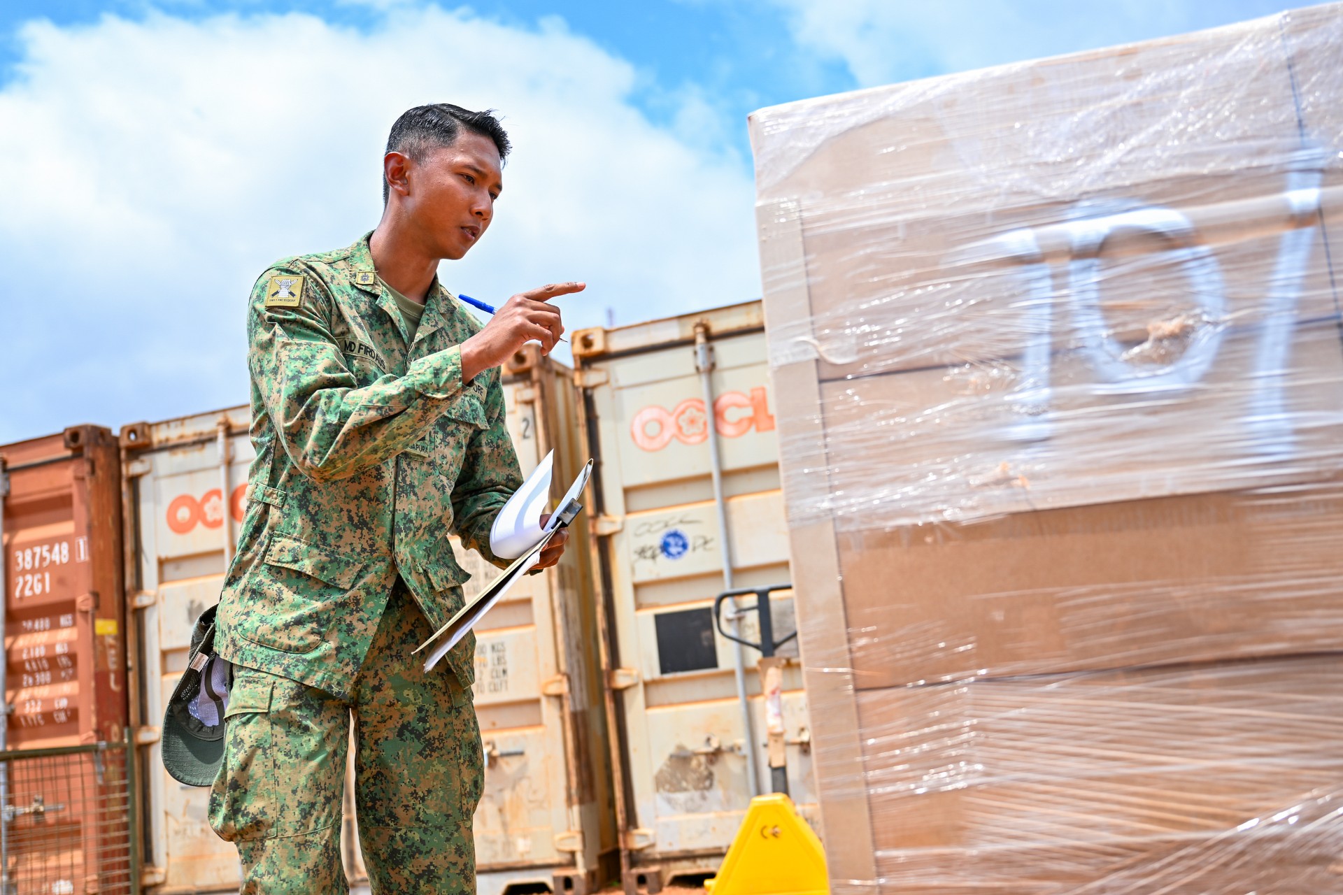 CFC Muhammad Firdaus checking stores at Camp Tilpal. He has enjoyed working with multiple entities over the course of XWB, while seeing first-hand the SAF’s full capabilities being exercised in SWBTA.