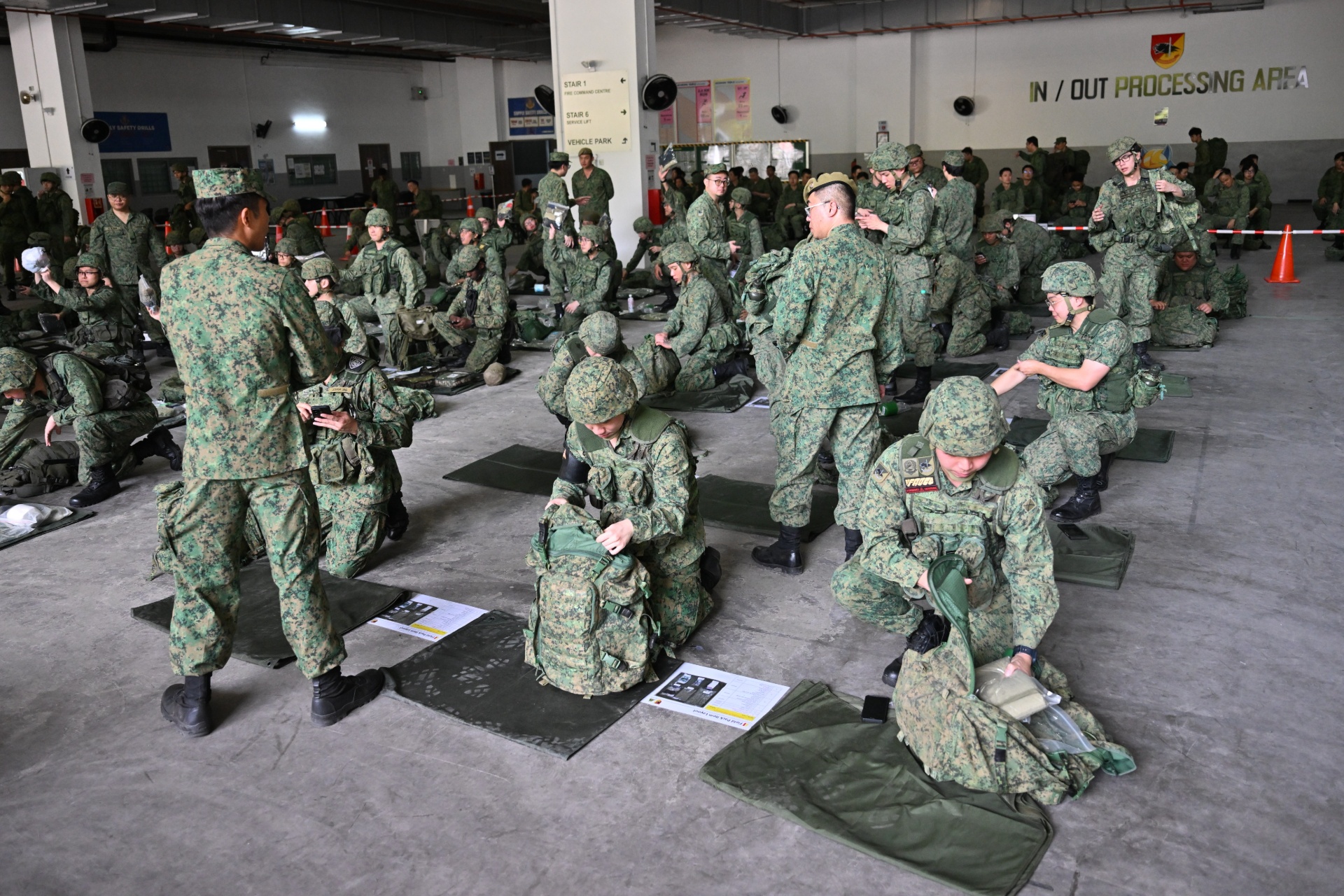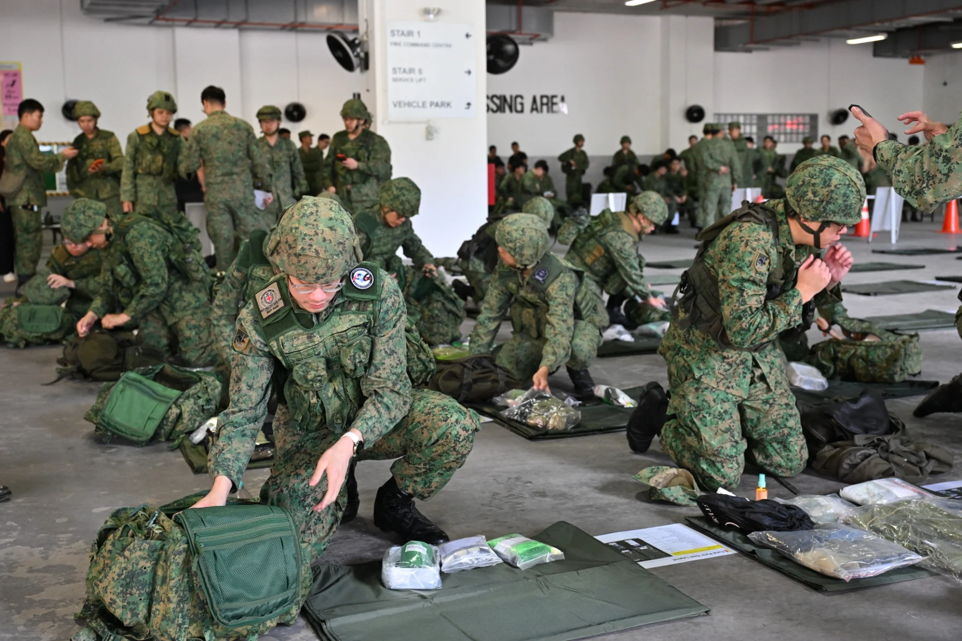 Selepas pemprosesan, anggota NS akan menuju ke stesen ulangkaji yang pertama – stesen pemeriksaan pek lapangan.