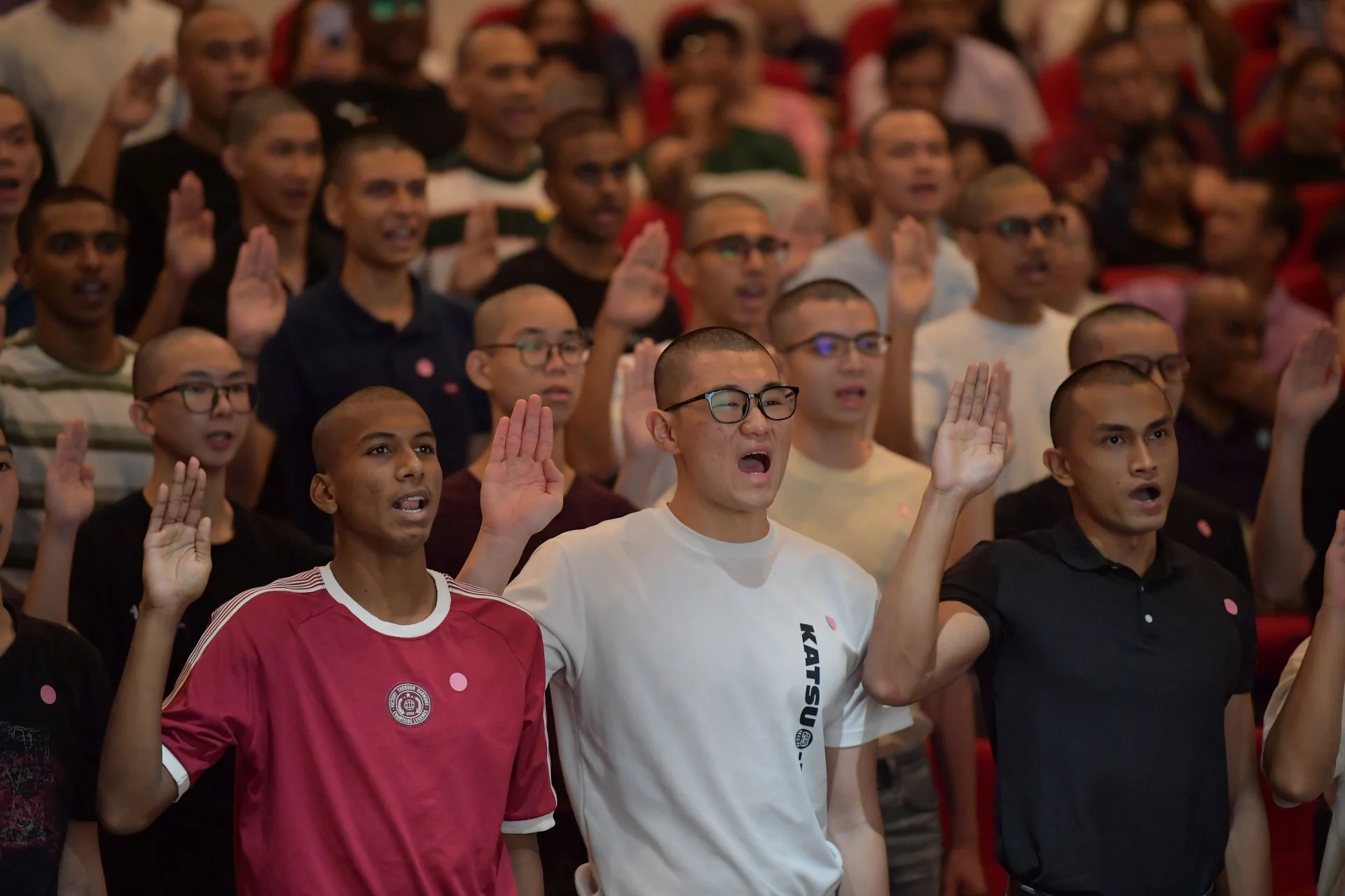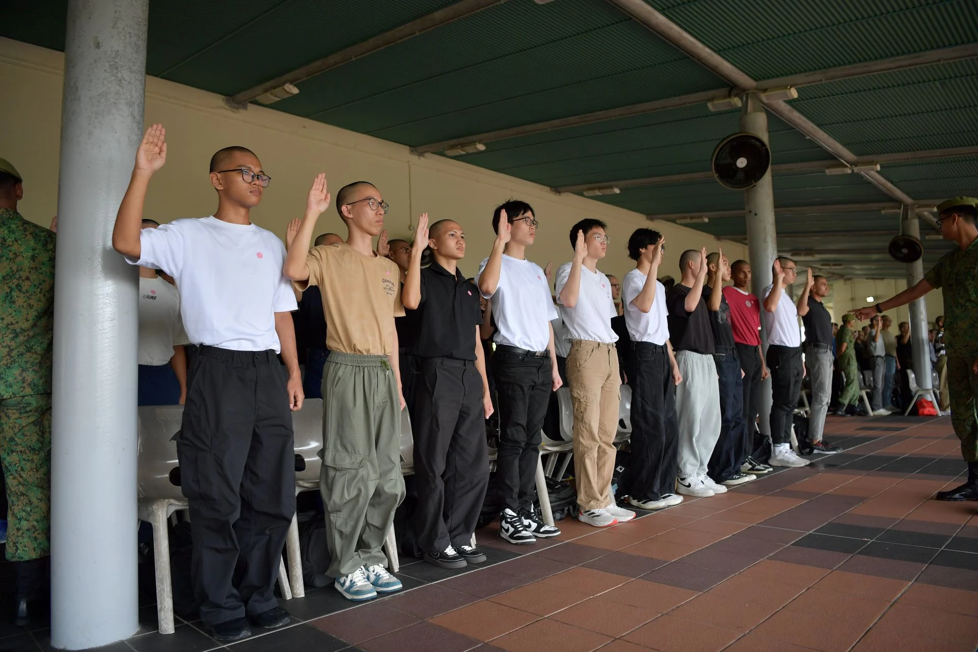 在亲人的陪伴下,这些新入伍的士兵初次体验了军旅生活,从结识战友到以新加坡武装部队成员的身份宣誓效忠。