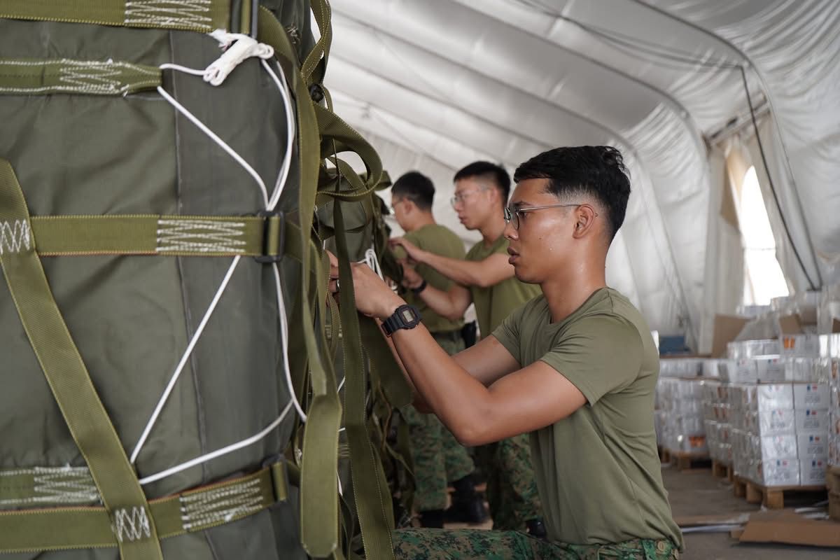 The 27-year-old was part of the team from the Singapore Army’s 3rd SAF Transport Battalion (3TPT) who saw to the safe and secure rigging of the humanitarian loads before each airdrop.