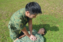 As part of their training, recruits are taught to recognise and provide first aid for heat injuries, burns and fractures during Buddy Aid, a basic soldiering skill module. They also learn to recognise signs of choking and perform the Heimlich Manoeuvre among other basic first aid skills.
