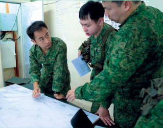 CPT (NS) Tan (left) planning an operation with his fellow ICT mates.