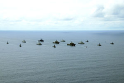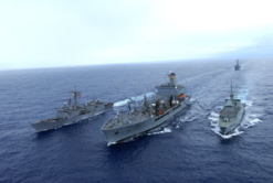 RSS Steadfast (far right) validating its ability to conduct sustained sea operations during Exercise Rimpac when it was out at sea for 22 days off the coast of Hawaii.