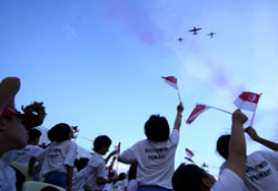 Some 25,000 primary five students from 80 schools had the opportunity to preview NDP 05 on 9 Jul, and these young reviewers gave the parade a big 'thumbs-up'.
