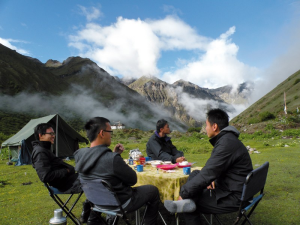 Starting the day with a simple al fresco breakfast while enjoying the breathtaking panorama a range of mountains which stands at about 5,000m. One look at the stunning scenery cured them of their fatigue.