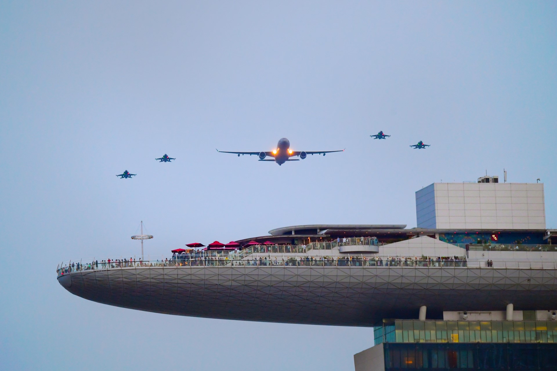 Satu lagi NDP yang pertama ialah Pembentukan Sayap Tetap – di mana Pengangkutan Tangki Pelbagai Peranan (MRTT) A330 terbang dengan empat jet pejuang F-16D+, dua di setiap sayap.