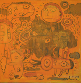 His art, which he classifies as pop art (meaning popular art), has a whimsical feel and is characterised by bold colours, shapes and faces. Surrealist thinking is a major influence in his work, which often involves drawing spontaneously to derive inspiration from the unconscious mind.