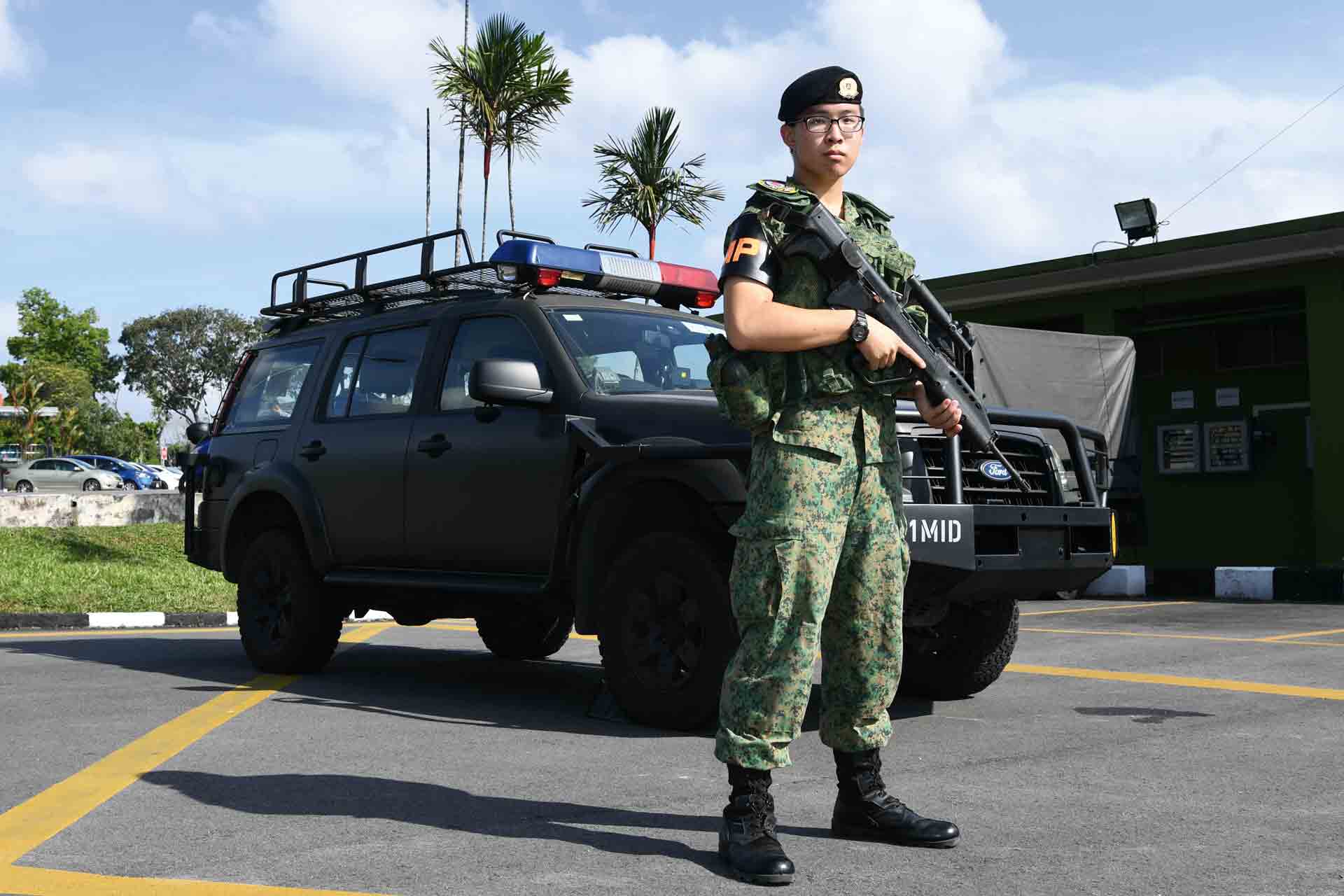 Currently a Military Police Specialist at Tengah Air Base, 3SG Chia leads a three-man team to patrol the air base and keep an eye out for unauthorised personnel or drones.