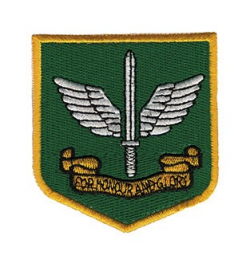 Instead of the conventional rectangle which most formation badges sport, the Commandos' is in the shape of a shield. Introduced on 1 Dec 1981, the winged bayonet insignia symbolises that the Commandos are an elite airborne combat unit. The green background is a representation of their Army origins while the gold border marks the formation as an elite force.