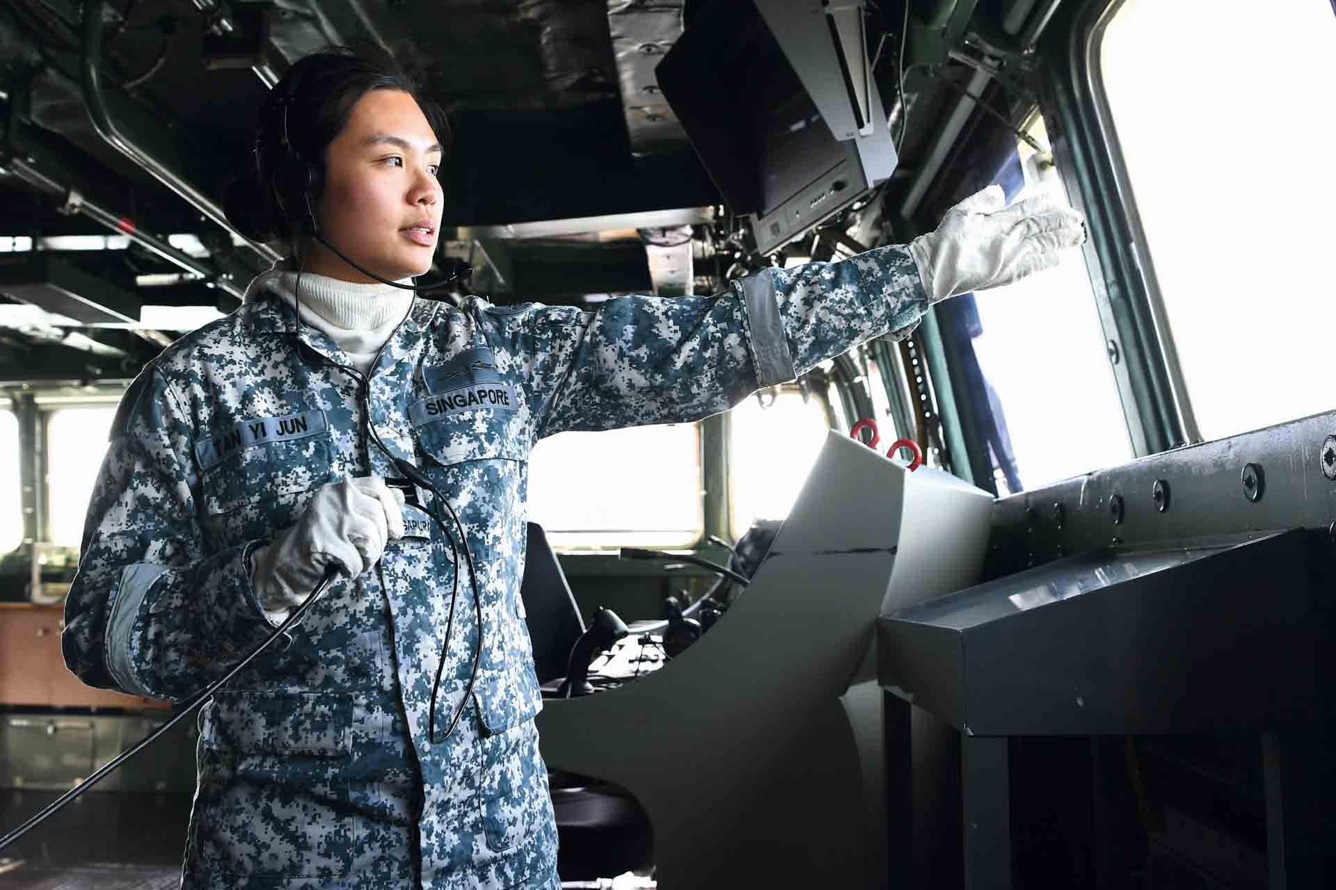 Kapten (CPT) Tan Yi Jun, seorang PWO di atas kapal frigat RSS Intrepid, membawa PIONEER untuk memahami peranan beliau: