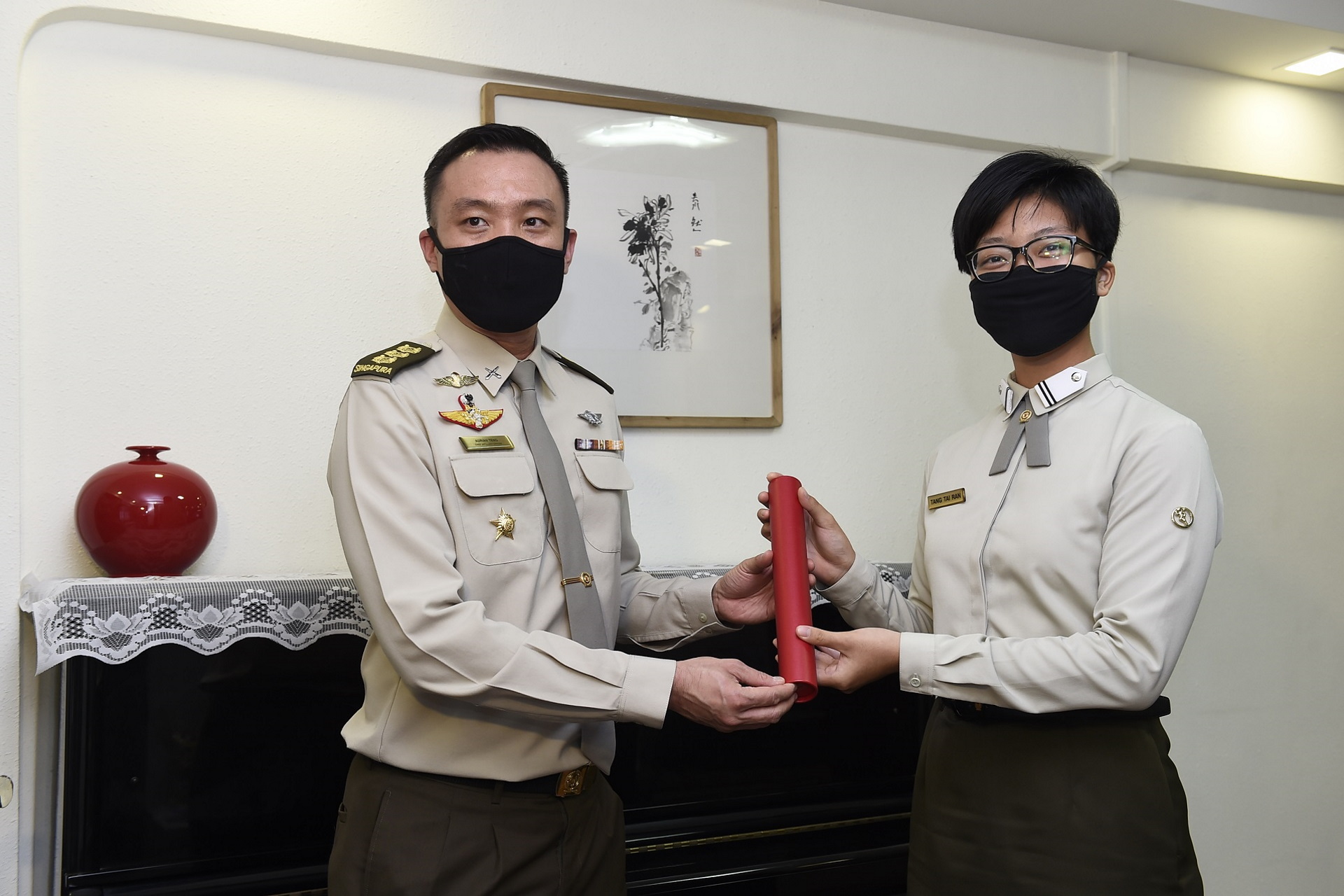 Mengambil kira situasi COVID-19, mereka menerima biasiswa mereka daripada pelbagai wakil Kementerian Pertahanan (MINDEF) dan wakil SAF di dalam rumah masing-masing.