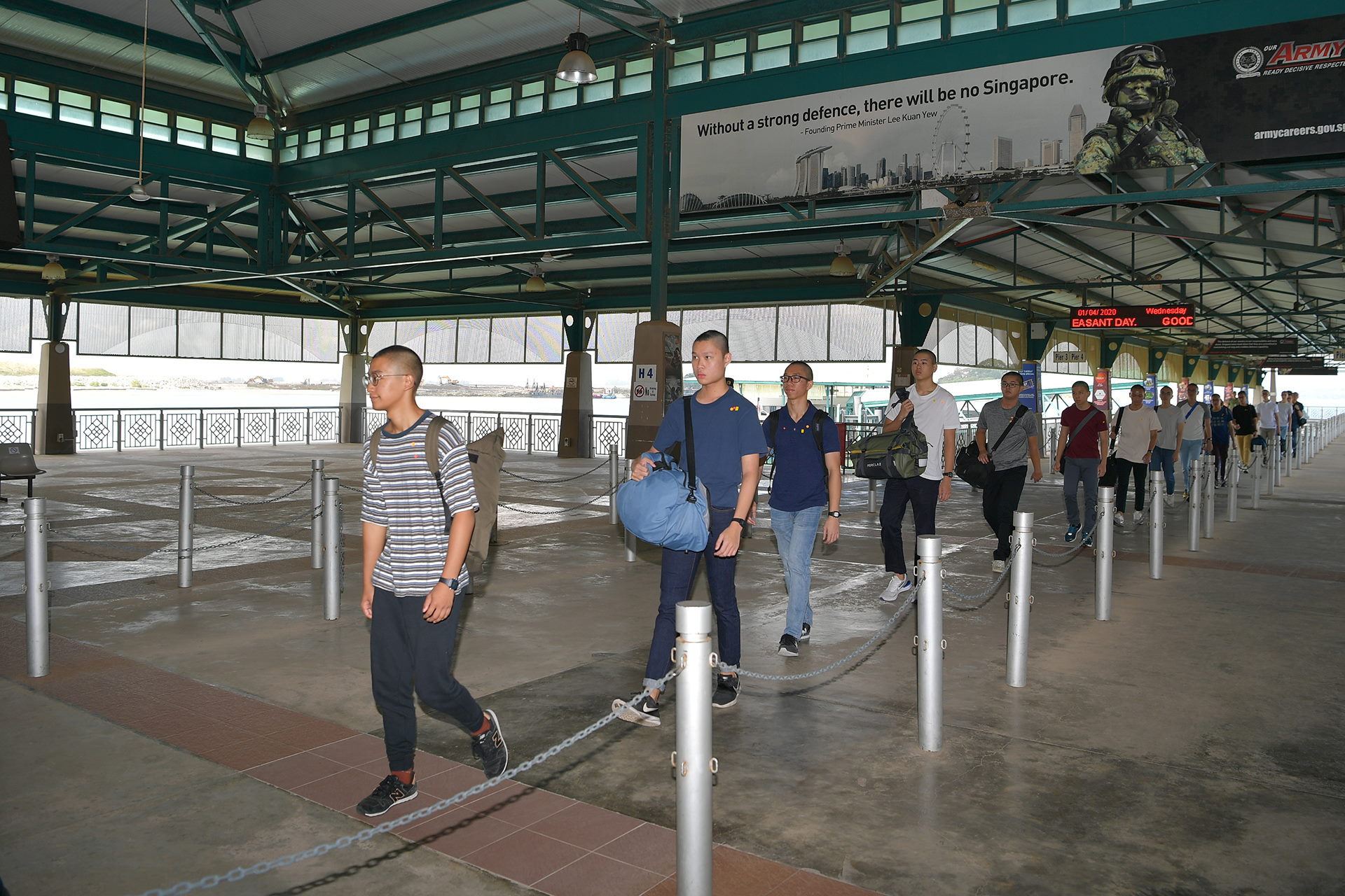 As the ferries are operating at only 50 per cent seating capacity, ferry timings between Pulau Tekong and the SAF Ferry Terminal have been adjusted to cater to the smaller, multiple batches of passengers.