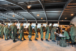 02) In-processing: This is where attendance is registered and the individual NSman receives his mobilisation card and a customised equipping list of the relevant items he must collect. For example, those belonging to a mortar platoon will have to draw the weapon and all the specialised equipment needed to operate it, on top of their personal SAR 21s.