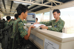 Once their attendance has been captured by the Automated In/Out Processing System (AIOPS), they are given a mobilisation card and an equipping list which tell each NSman where to go and what equipment he has to obtain for his role. The process takes about a minute to complete.
