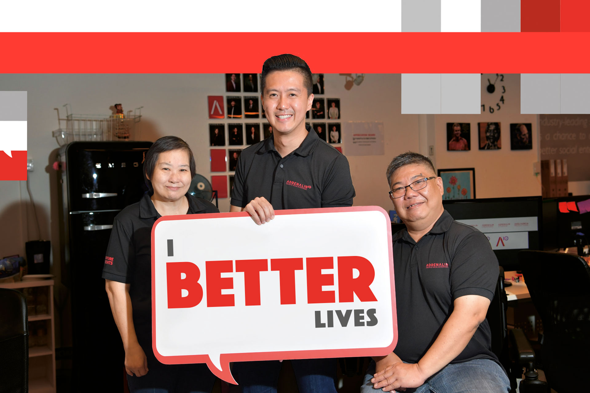 The first is Mr Michael Quek, 53, who manages Adrenalin's photo booth services. He suffered a stroke in 2005, which left him wheelchair-bound. After losing the use of his right arm, he could no longer work as an electrician.