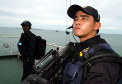 Enhanced sea security: Since March this year, armed sea marshals (comprising members from the RSN and the Police Coast Guard) have been deployed on merchant vessels in Singapore waters.