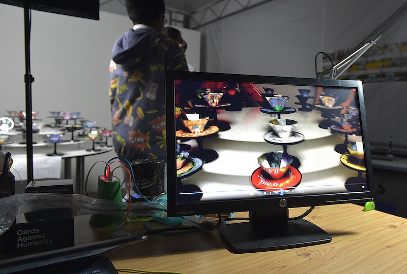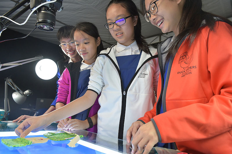 One of the teams has taken the theme quite literally, using reflections to tell their story. The group from Beatty Secondary School chose to use praxinoscopes - spinning mirrored devices that create the illusion of movement - to animate old and new Singapore icons such as Changi Airport and Gardens by the Bay.